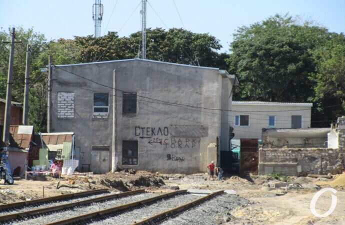 Рельсы на сегодняшний день уложены частично: ближе к Преображенской, появились они и на участке от улицы Екатерининской.