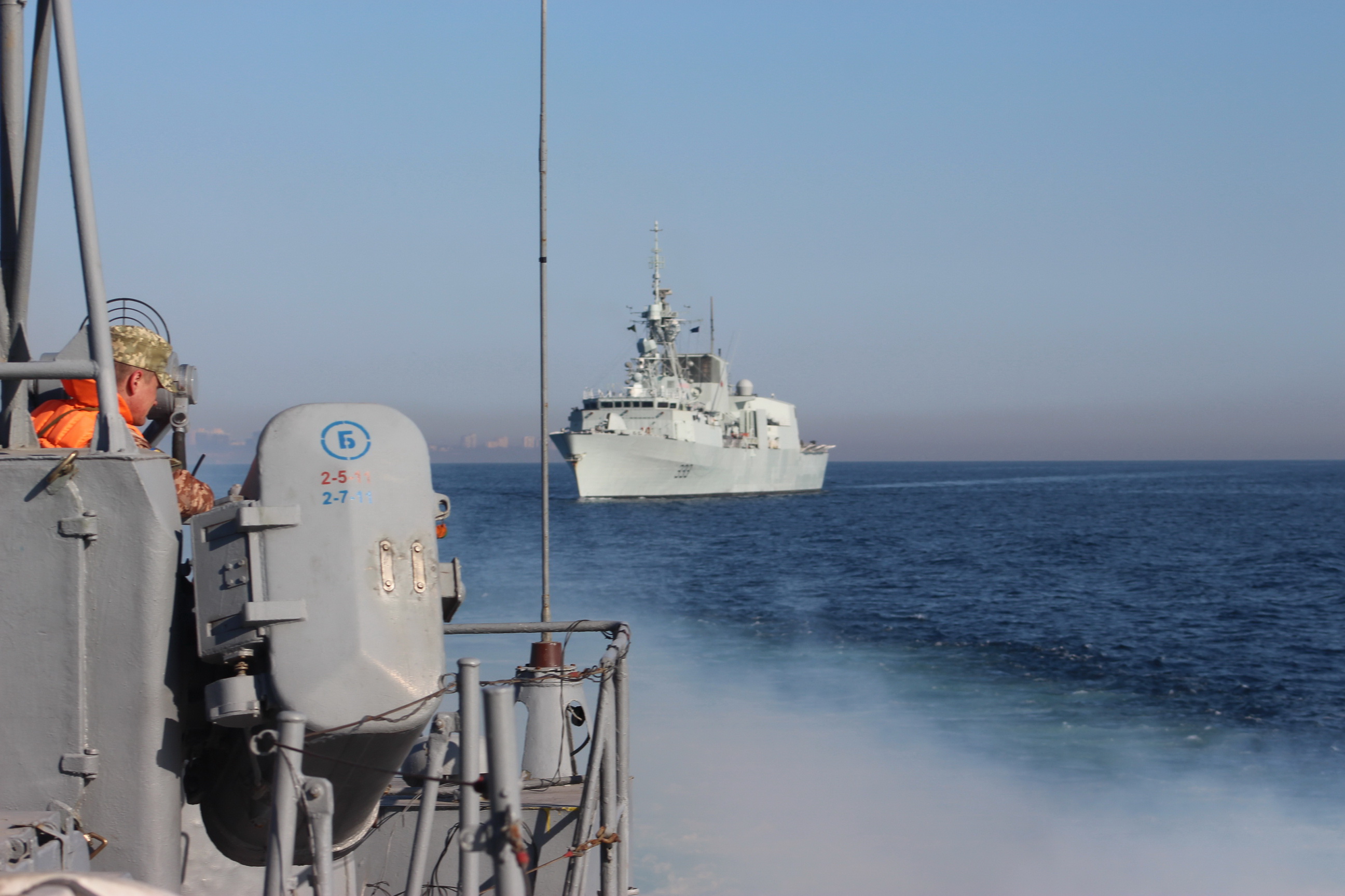 Как сообщили в Министерстве обороны, военные выполнили задания по тактическому маневрированию на ракетном катере “Прилуки” и фрегате Королевских ВМС Канады “Торонто”. Во время учений на борту “Прилук” находились двое операционных офицеров, осуществлявших непосредственное руководство действиями украинского и канадского кораблей.