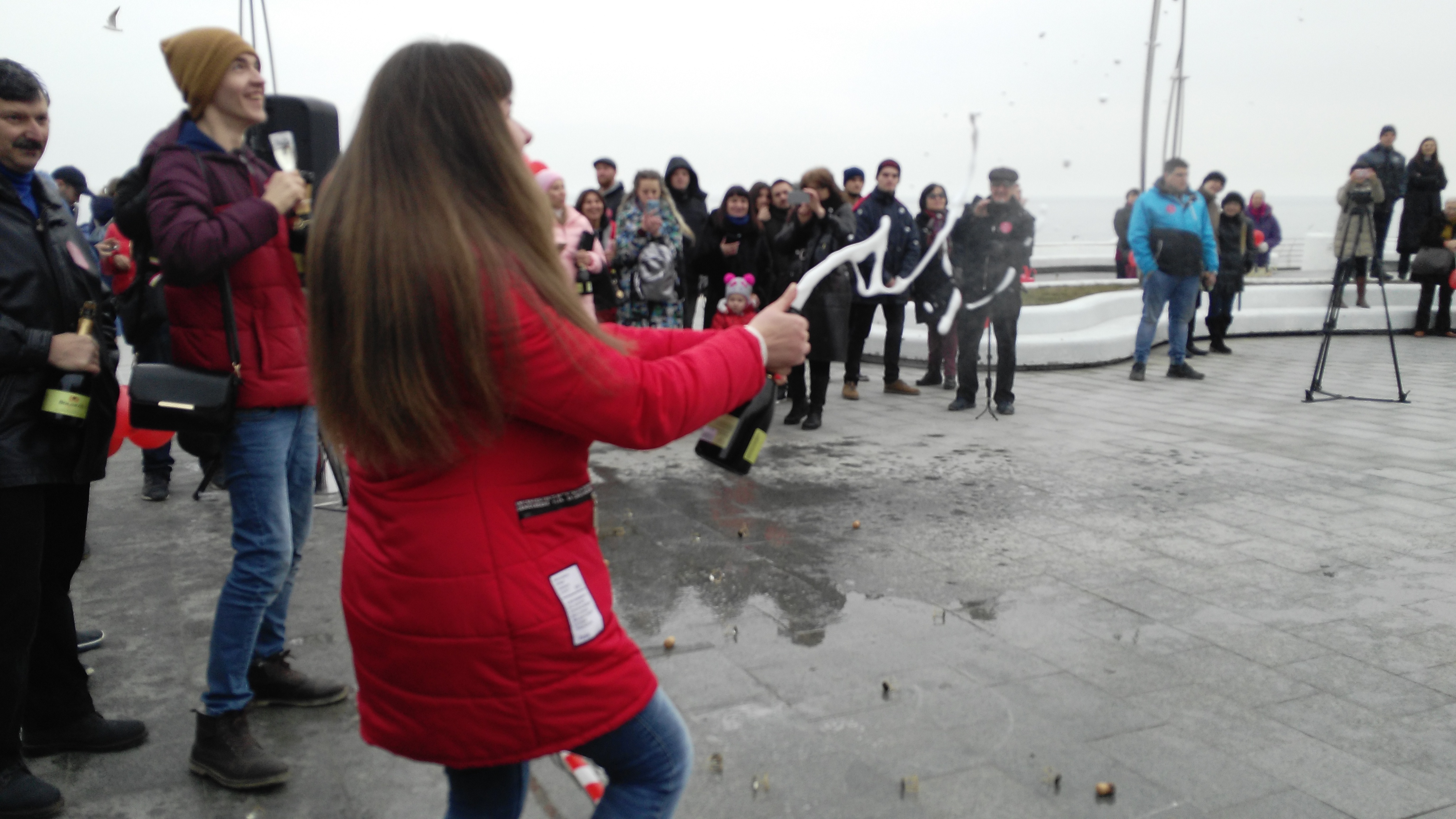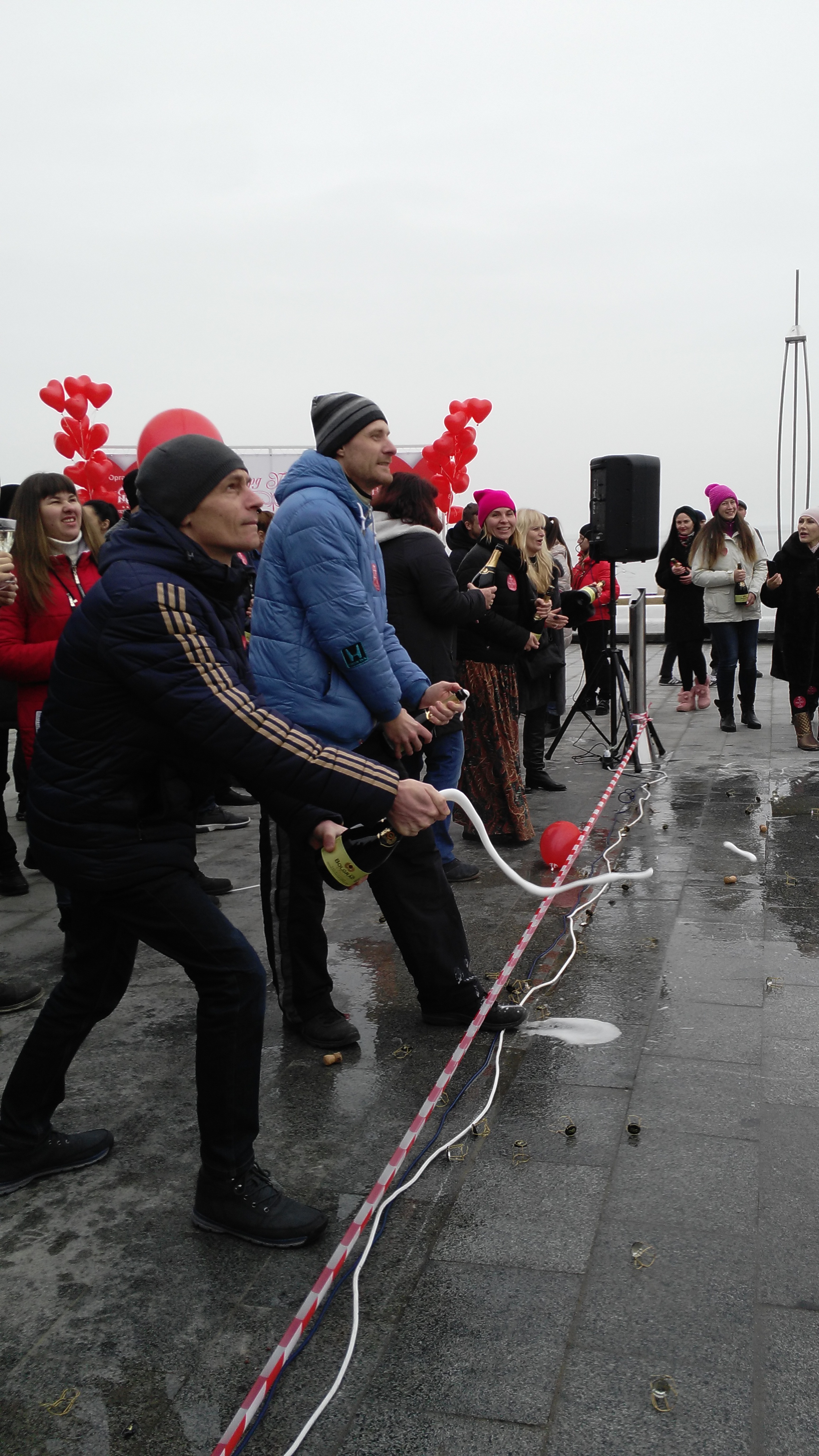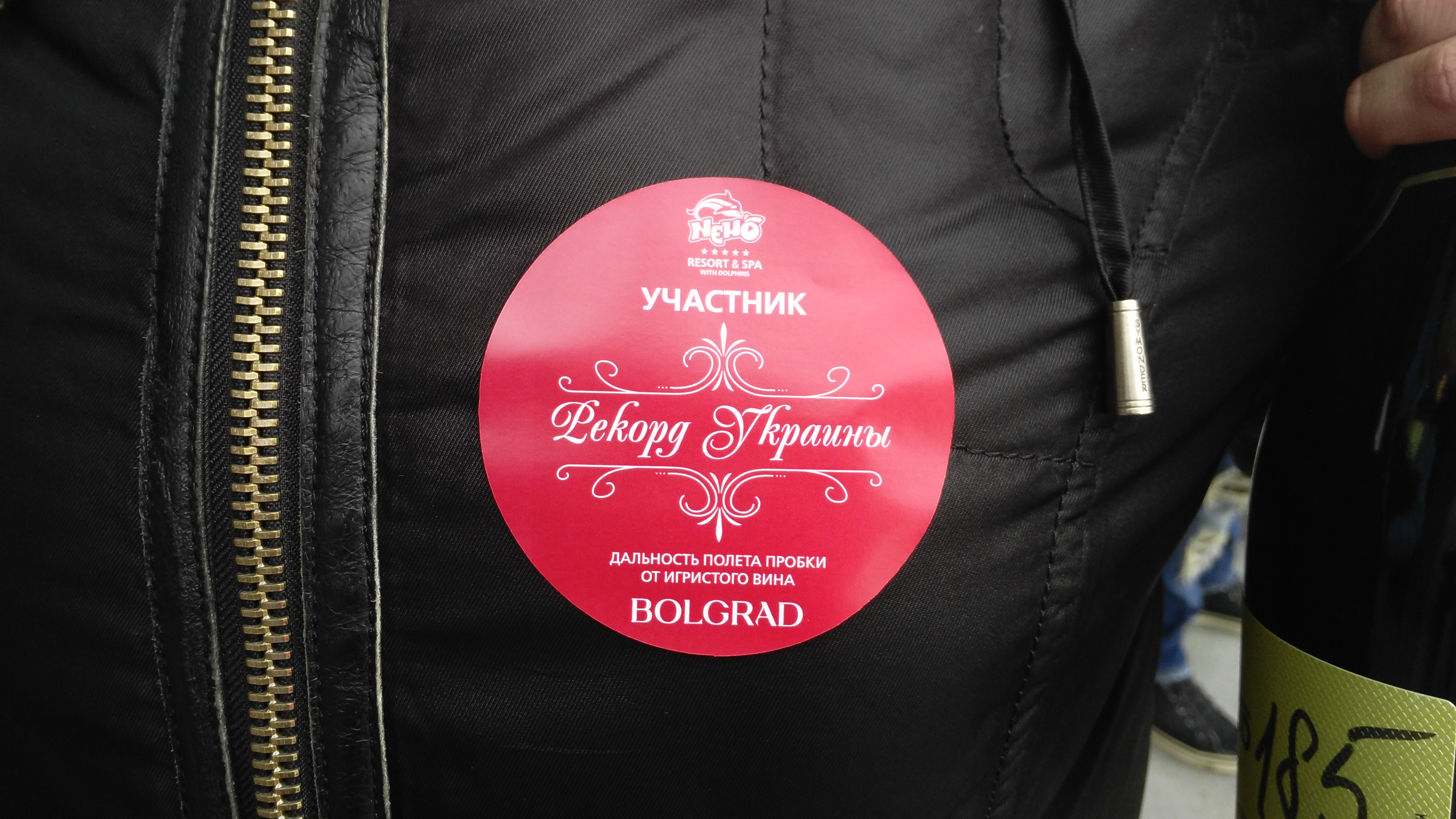 Для участия в соревновании по установлению рекорда по дальности полета пробки от бутылки игристого вина, который будет внесен в Книгу рекордов Украины, нужно было запастись хорошим настроением, зарегистрироваться, получить наклейку участника и пронумерованную бутылку с пронумерованной же пробкой.