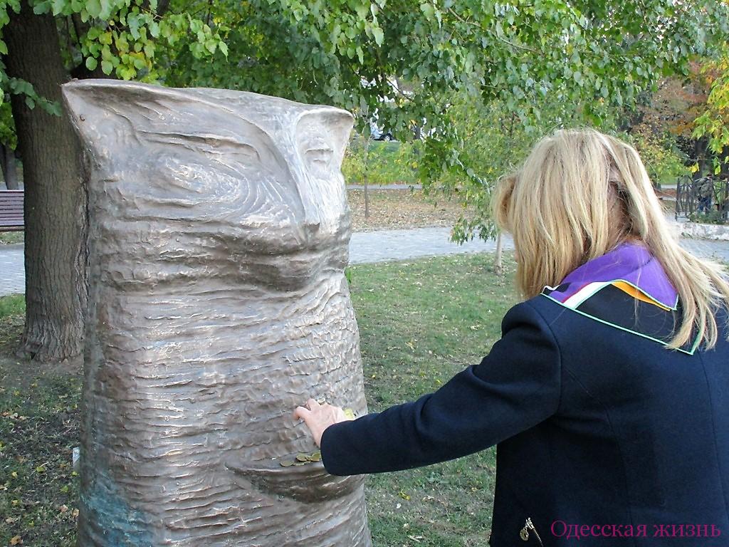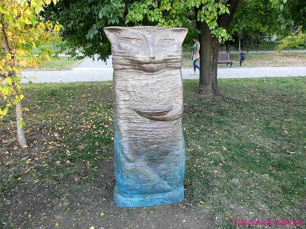 «В Одессе в парке им. Шевченко установлена статуя скифского кота! Пока еще не понятно, это оригинал, найденный при реставрации Потемкинской лестницы, или его копия. Но скиф он однозначно! Кстати, скифские коты обладали чудесными свойствами: если им дать 1 копейку, то голова после алкоголя не болит!!! Но кто попробует украсть — навлечет на себя скифские проклятия!!! Автор кота — Клим Степанов. Автор написанной чуши — я».