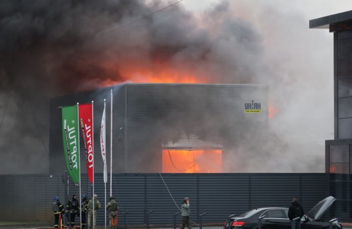 - После первой волны ракетного удара в многоэтажном доме в Соломенском районе Киева пострадали 10 человек. Об этом сообщил мэр столицы Виталий Кличко. Там произошло возгорание в результате ракетной атаки. Девять человек госпитализировали, одному оказали помощь на месте.