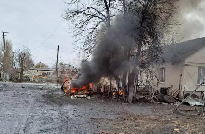 В результате ракетного удара произошел пожар в многоэтажном жилом доме, а также на станции технического обслуживания. Загорелись автомобили, повреждены электросети.