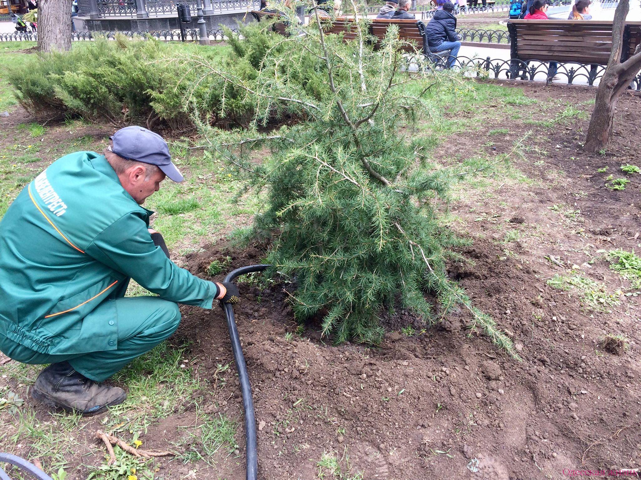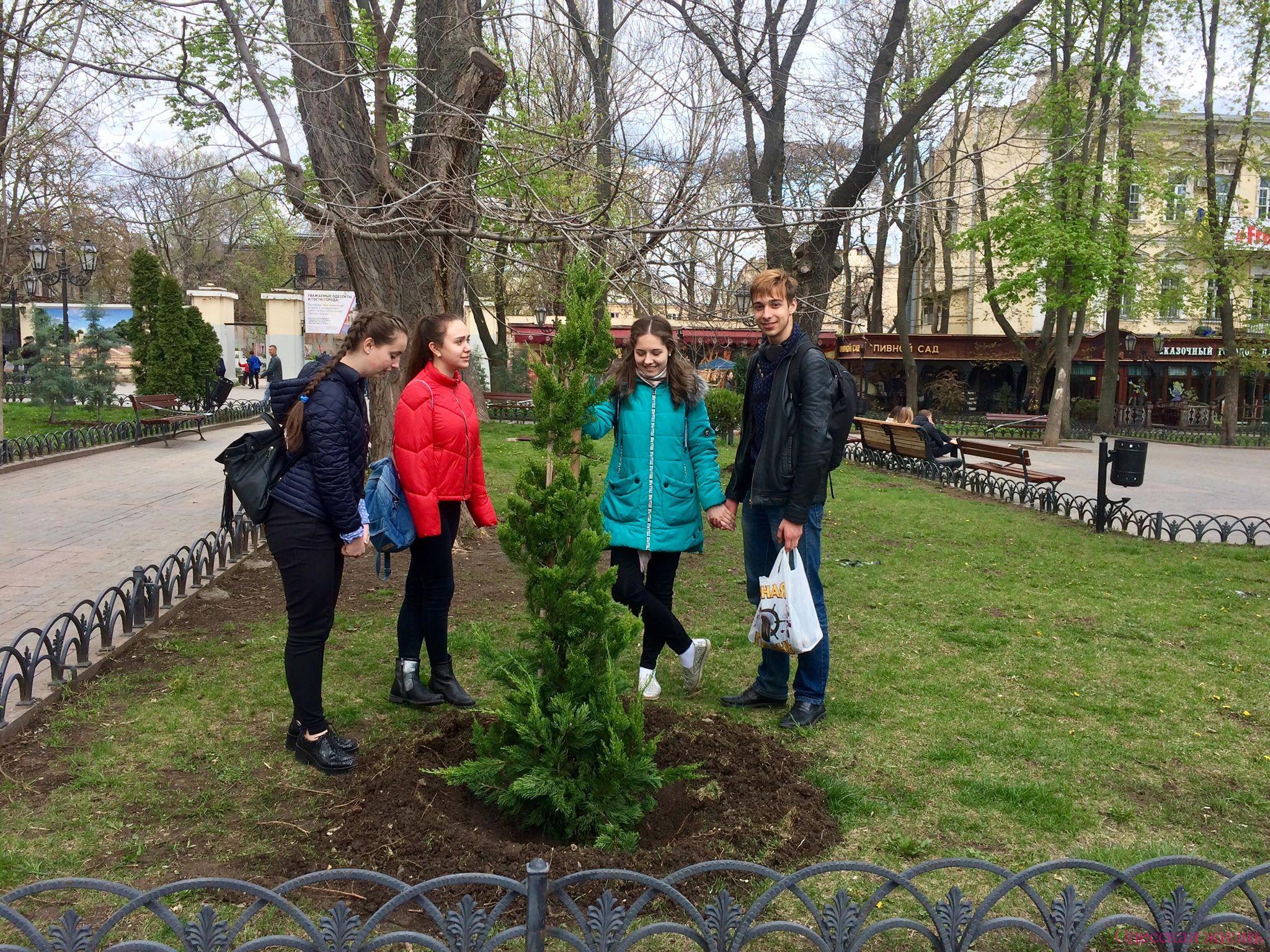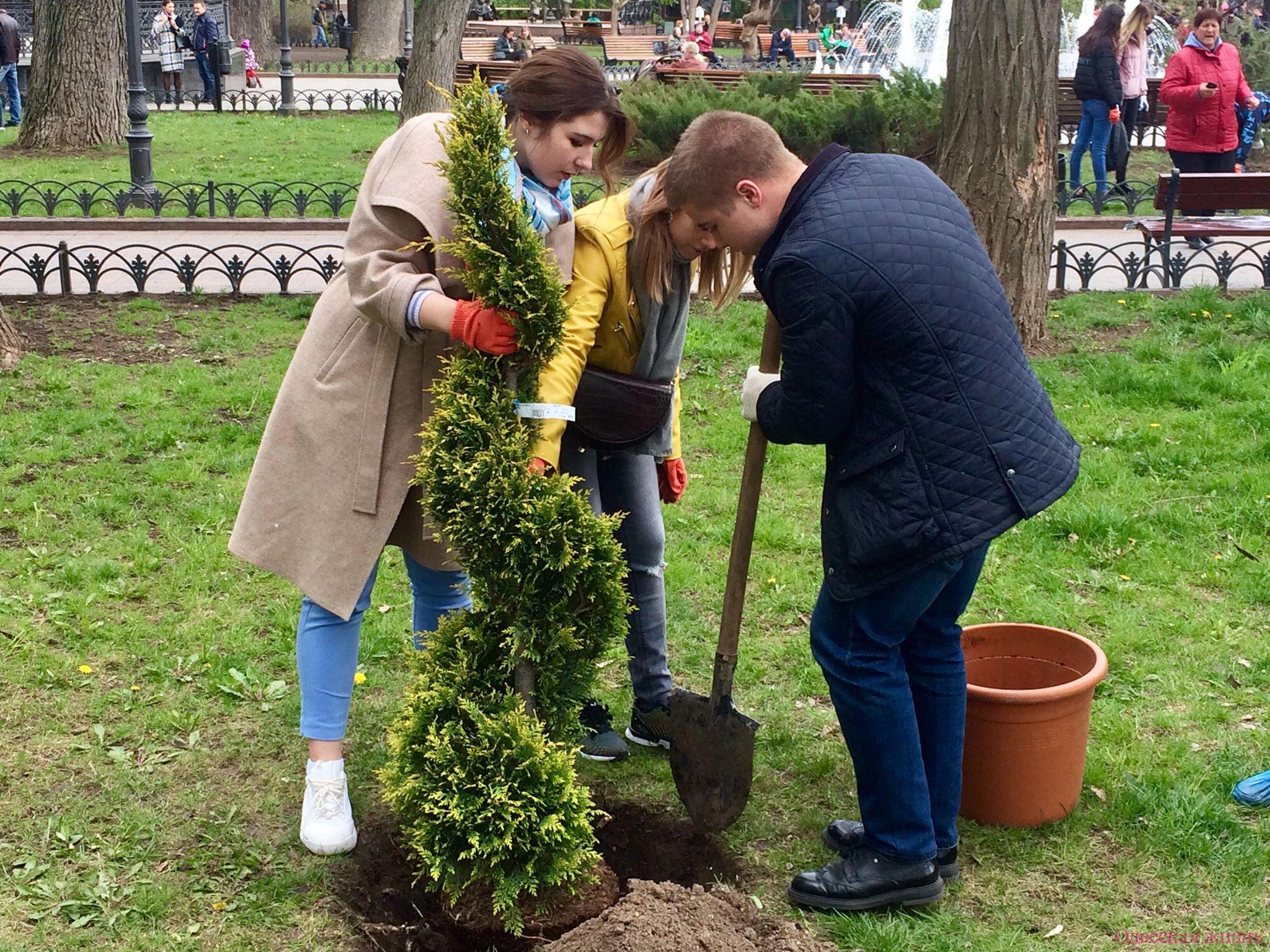 Молодым людям осталось лишь вынуть деревца из вазонов и закопать их. Однако и здесь без помощи сотрудников «Горзелентреста» не обошлось.