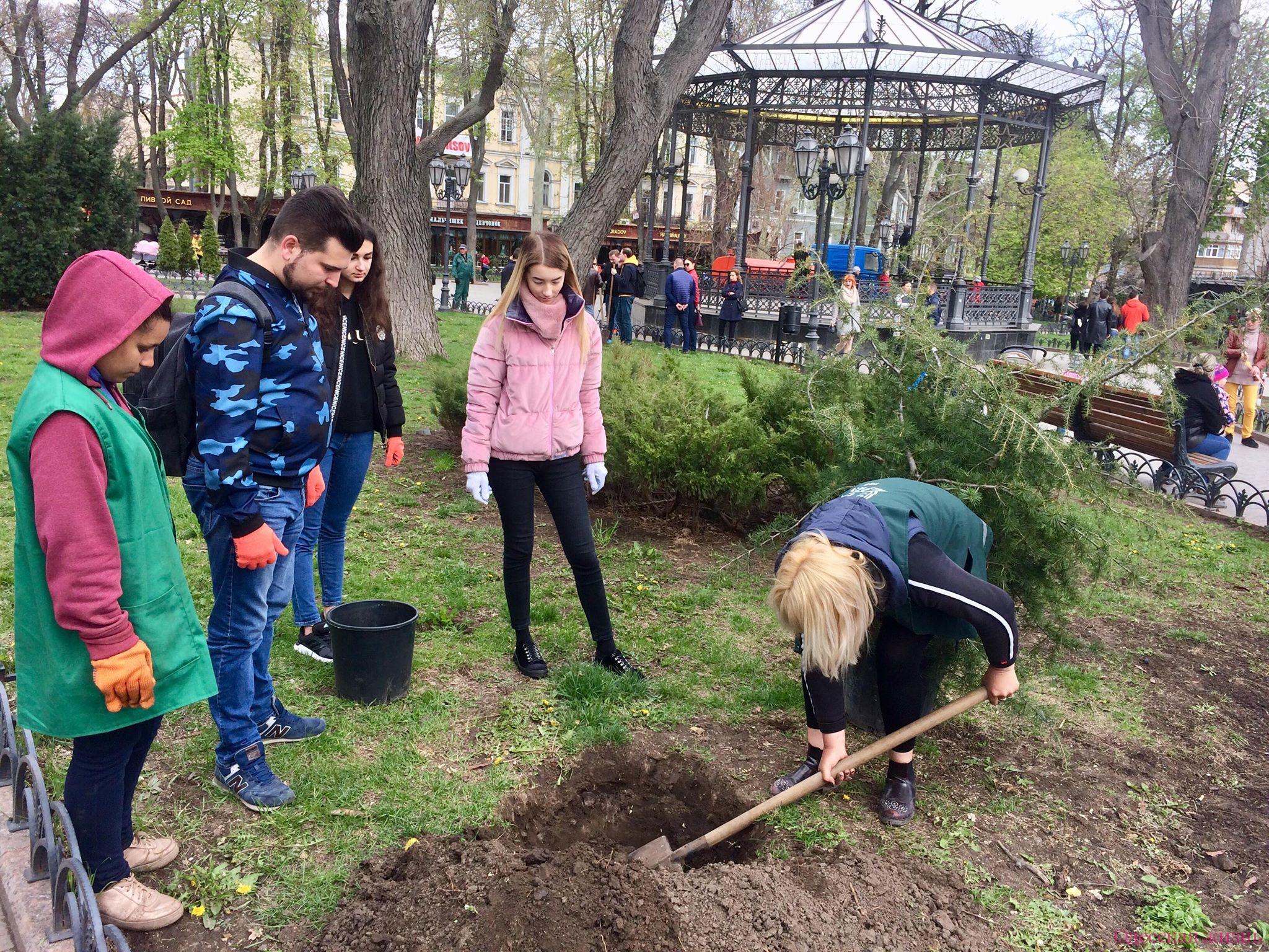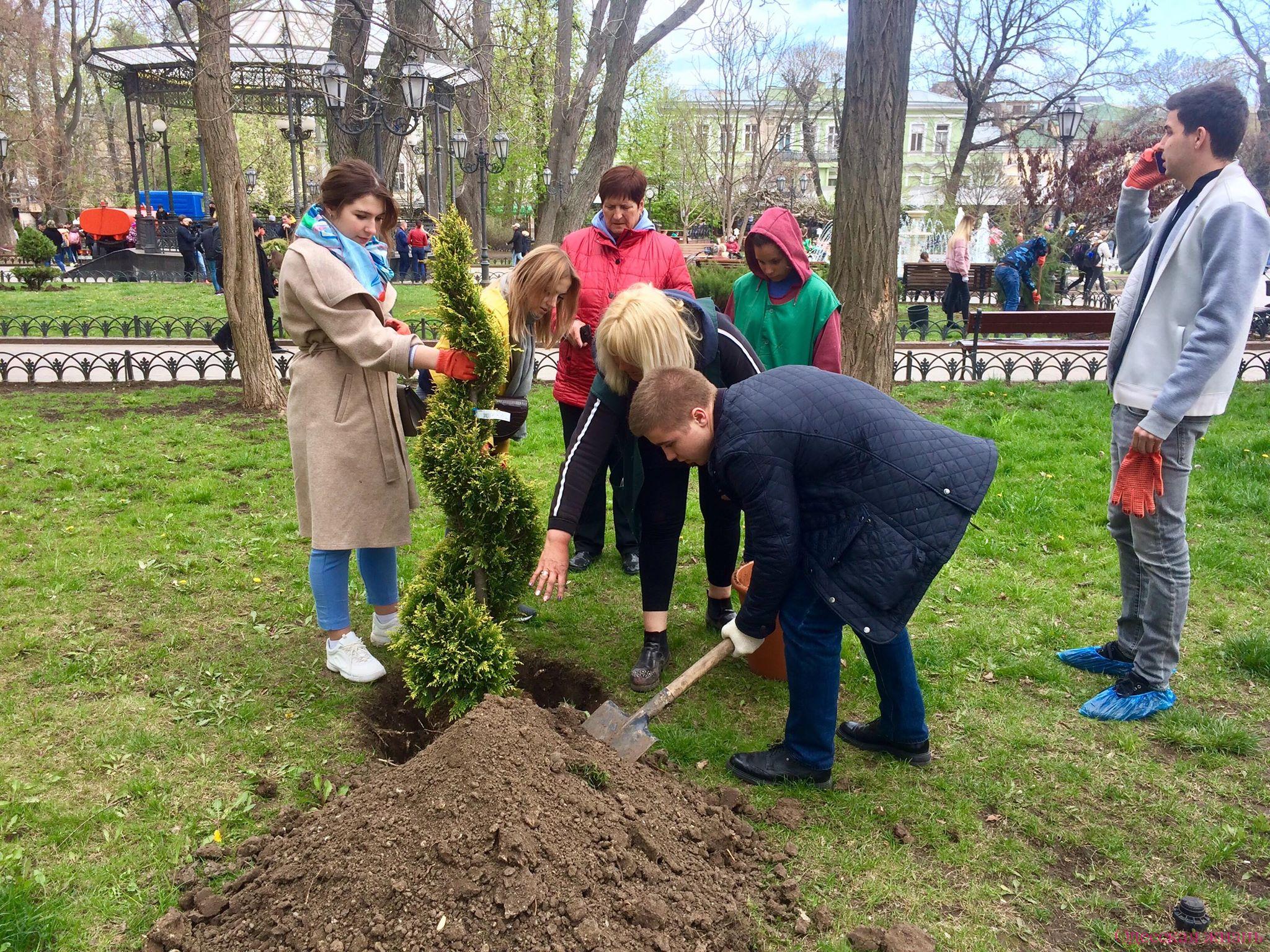 Правда, основную часть работы сделали за молодежь работники коммунальной службы. Именно они выкопали ямы для посадки растений.