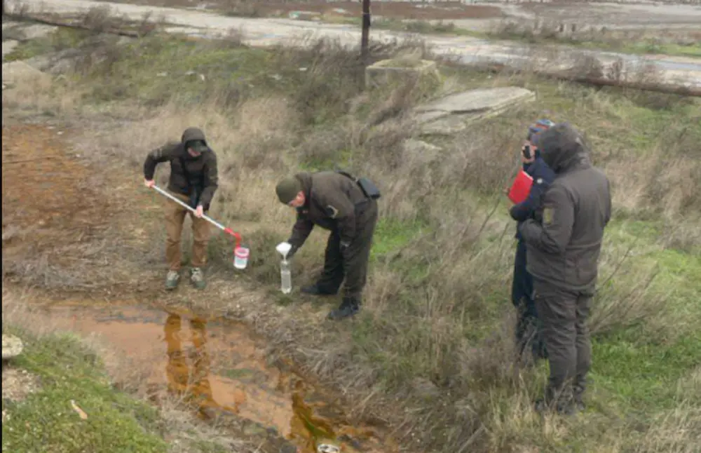 Во время обследования специалисты обнаружили факт сброса жидкости неизвестного происхождения прямо на берег лимана. Место происшествия осмотрели, зафиксировали на фото и видео, а также задокументировали все обстоятельства.