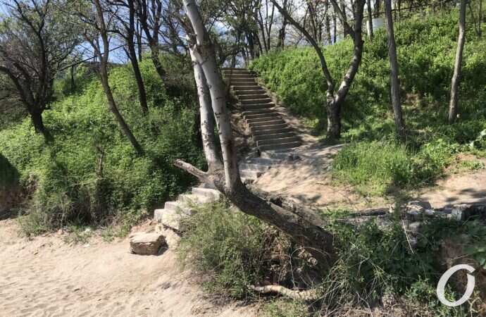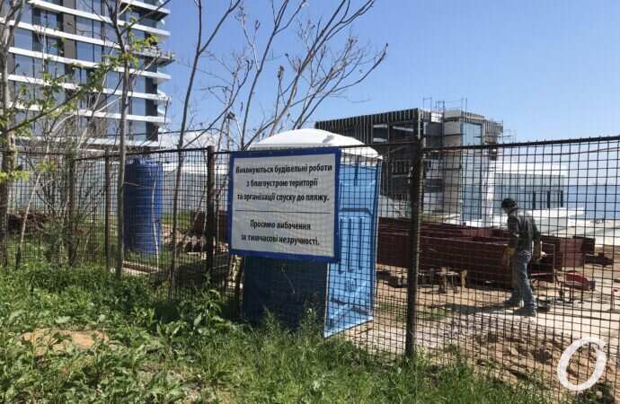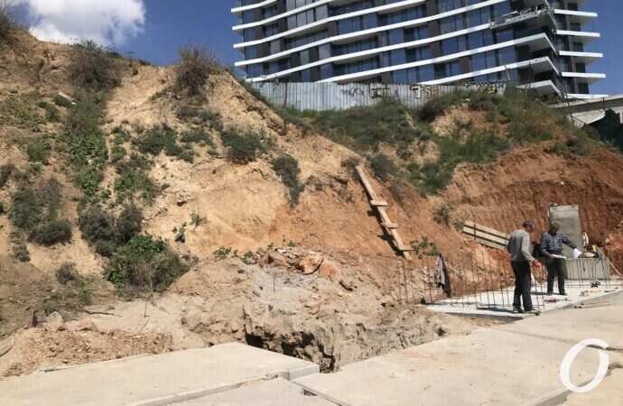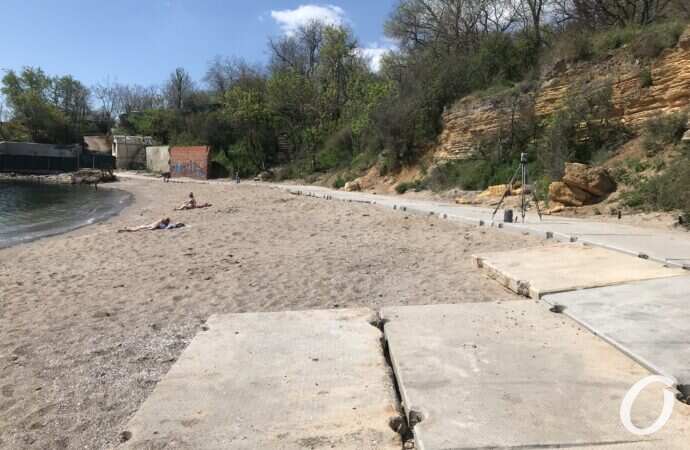 «Одесская жизнь» побывала на месте стройки. Как рассказали рабочие, эта дорога – временная. Плиты выложены для подъезда техники на место строительства лестницы, которая будет соединять пляж и Трассу Здоровья. Как только объект будет сдан – плиты уберут.
