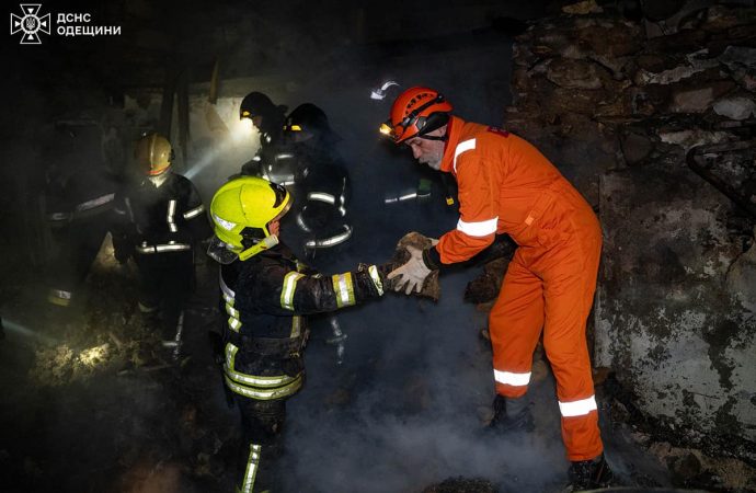 Как разбирали завалы, доставали оттуда раненых и тушили огонь, видно из фотографий и видео, опубликованных Одесским областным управлением ГСЧС Украины в Одесской области.