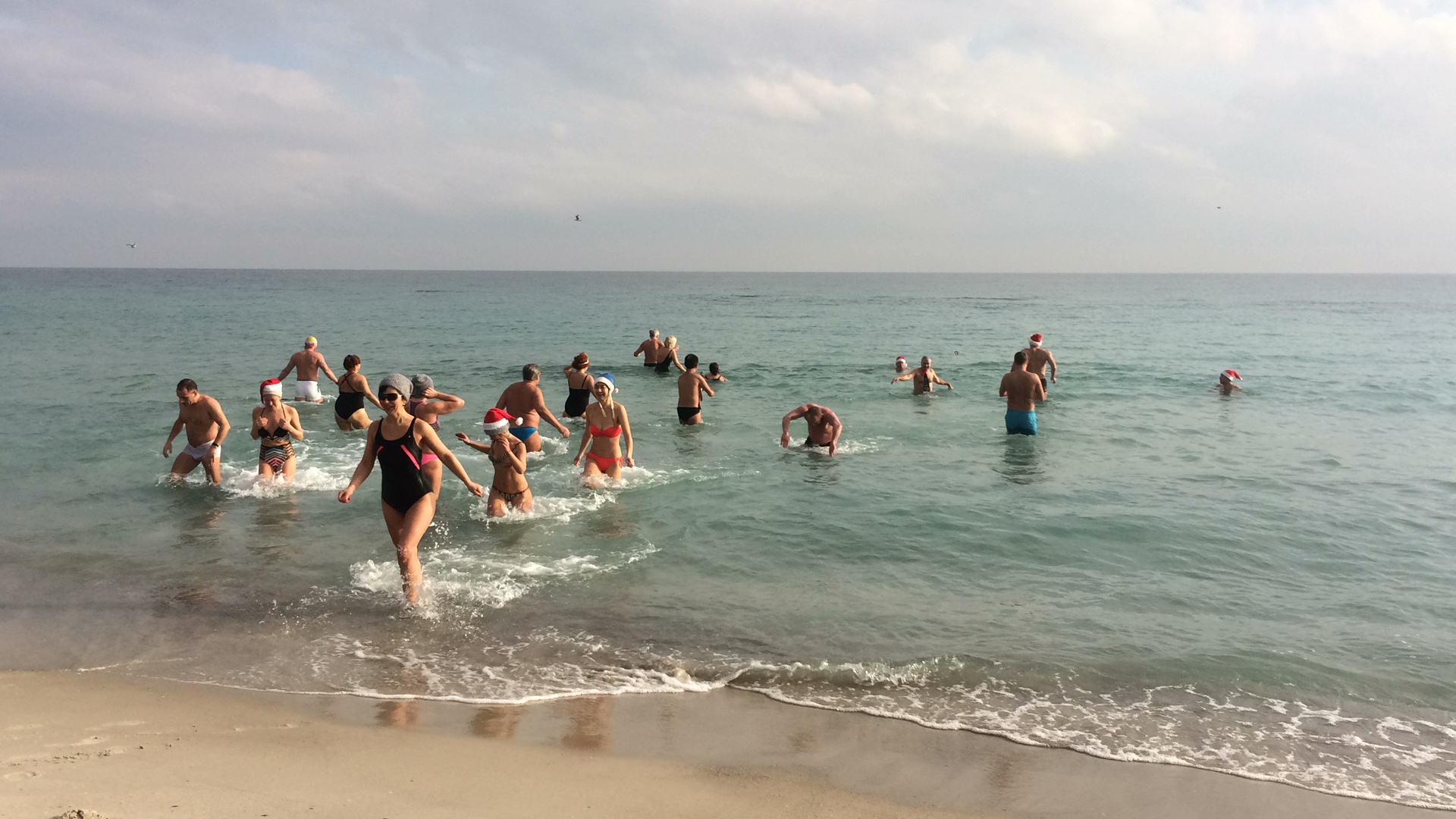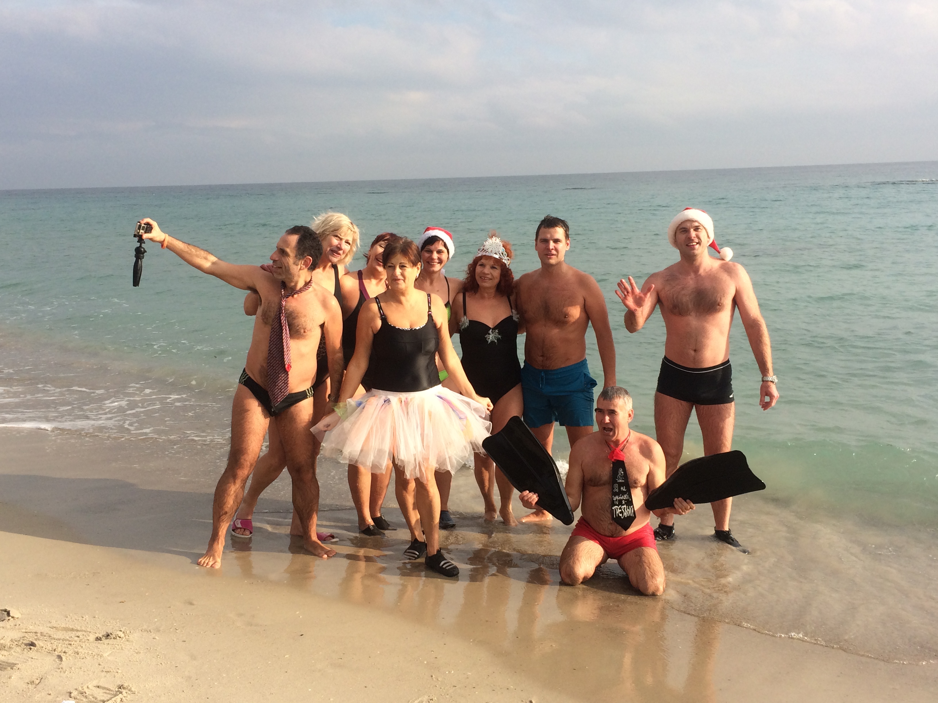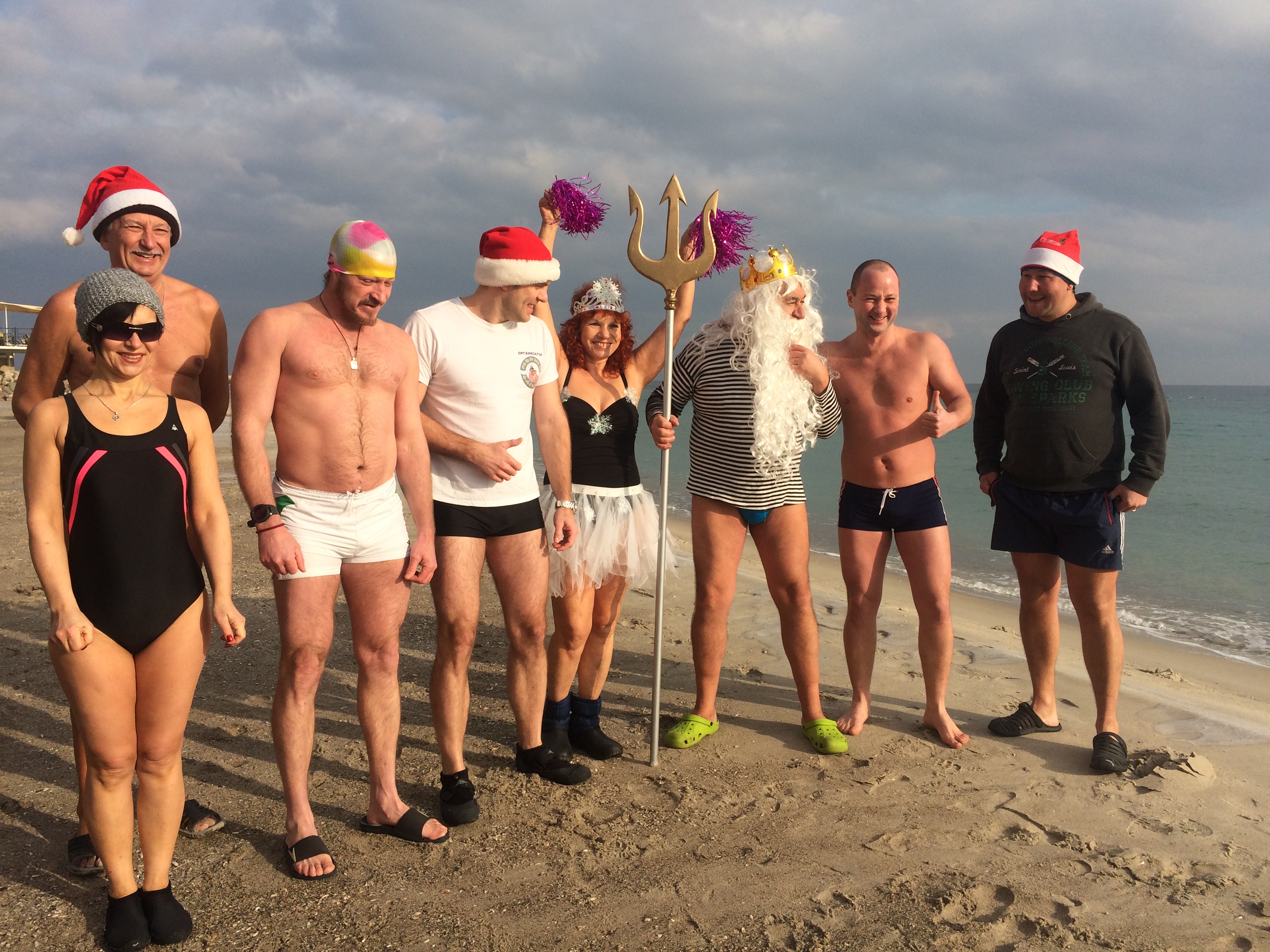 Раздевшись до купальников и сделав небольшую разминку, моржи поздравили всех с наступающим Рождеством. А потом с радостными криками ринулись в воду. Причём, некоторые даже в ластах.