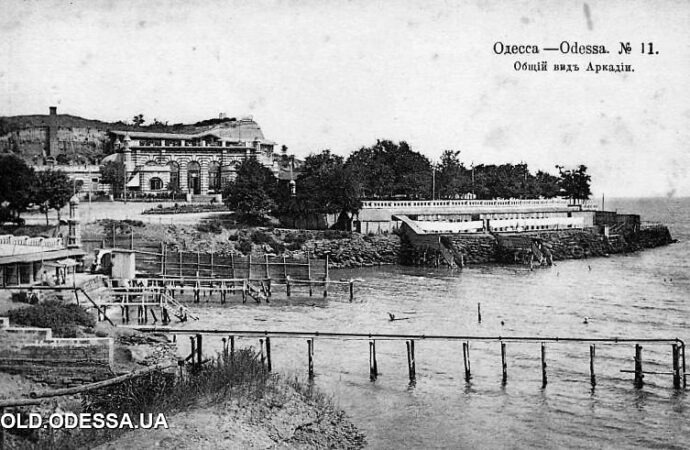 - Середина 1910-х годов – в Аркадии построено здание заведения теплых морских ванн – водолечебница, работавшая с 8 утра до 8 вечера.