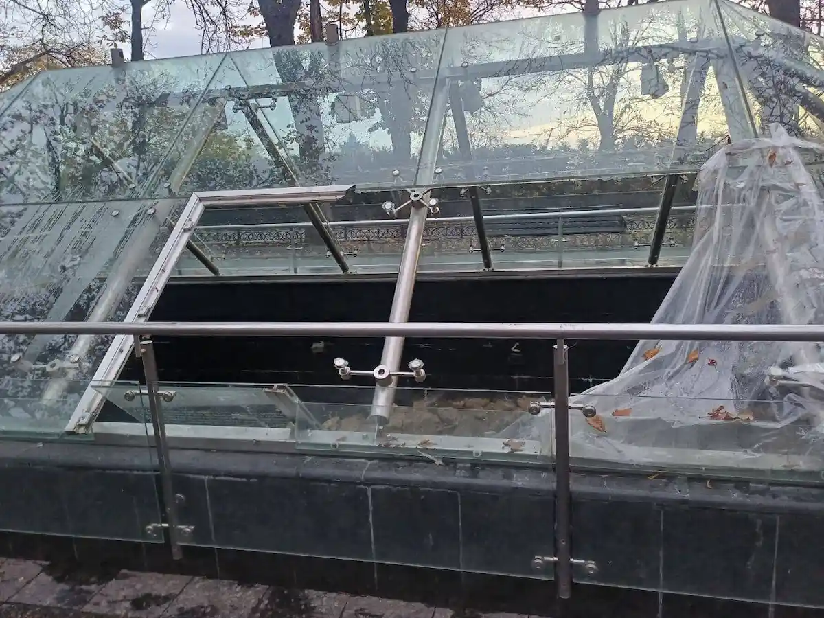 Напомним, часть защитного стекла музея под открытым небом разбили еще в июне этого года, после чего конструкцию закрыли полиэтиленом. Пленку неоднократно рвали, латали скотчем, но повреждения появлялись снова.