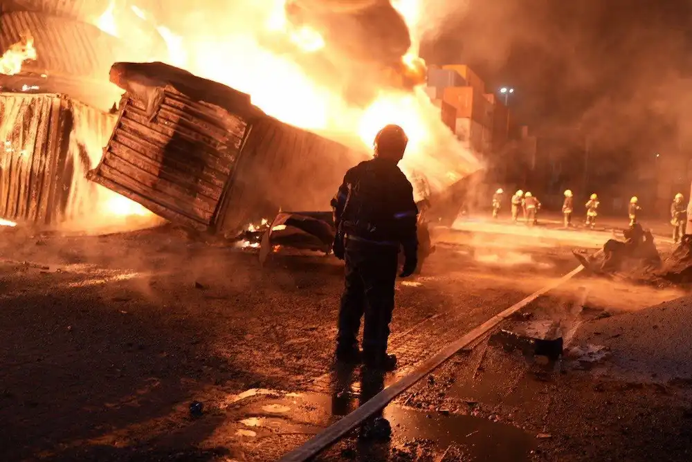 Также зафиксированы возгорания контейнеров и гражданского автомобиля.