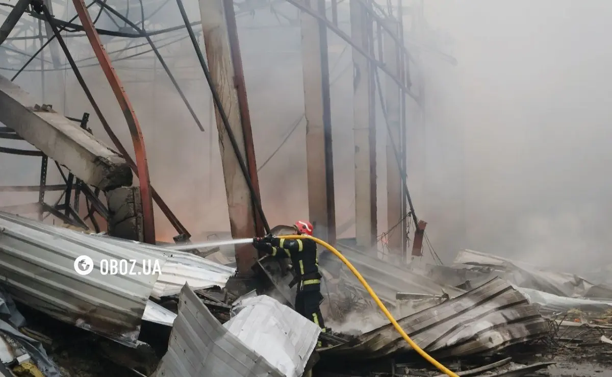 Местные паблики пишут, что в настоящее время на месте ночного прилета в Киеве бушует масштабный пожар.
