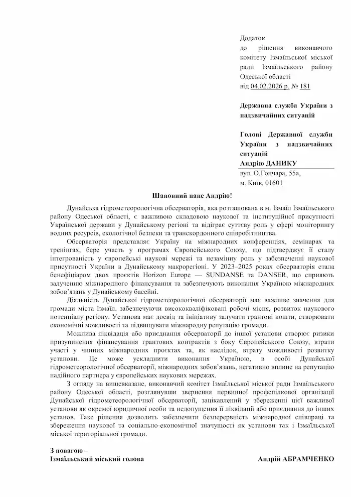 Дунайскую гидрометеорологическую лабораторию в Измаиле планируют присоединить к Гидрометеорологическому центру Чёрного и Азовского морей, который находится в Одессе. Об этом сообщили в Государственной службе Украины по чрезвычайным ситуациям в ответ на официальный запрос «Бессарабия INFORM».
