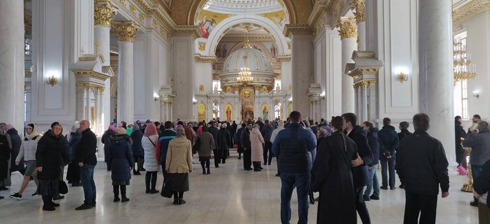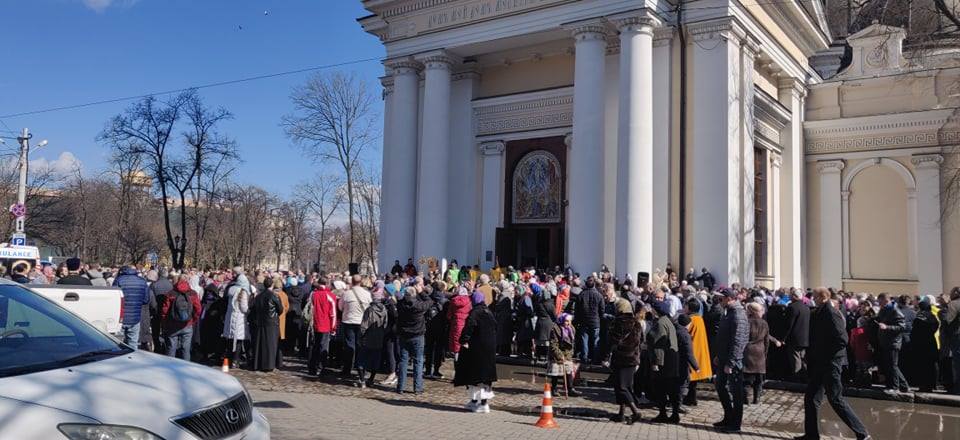 Тысячи православных и все духовенство Одессы собрались сегодня в полдень на Соборной площади в Спасо-Преображенском кафедральном соборе.