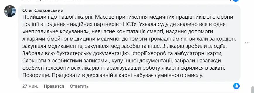Он подчеркнул, что такие действия деморализуют коллектив и ставят под вопрос смысл работы в государственной медицине.