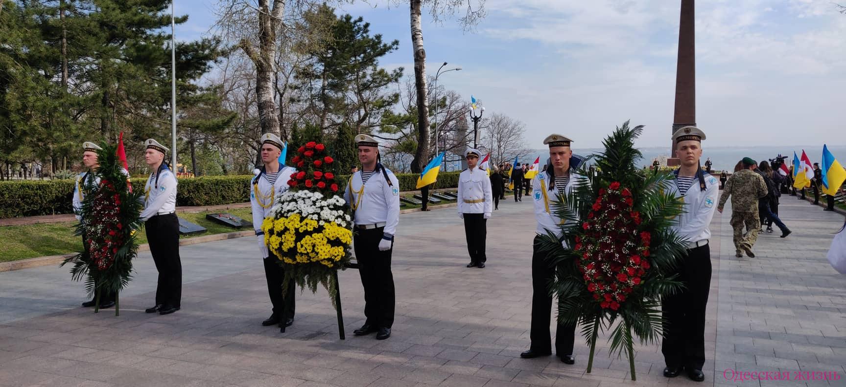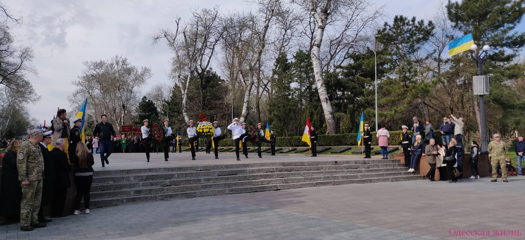 На Аллее Славы состоялось возложение цветов к памятнику Неизвестному матросу и был дан оружейный салют.