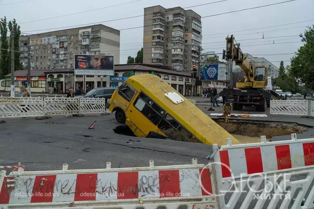 А это уже улица Левитана, где буквально ушли под землю маршрутка №127 и легковушка: