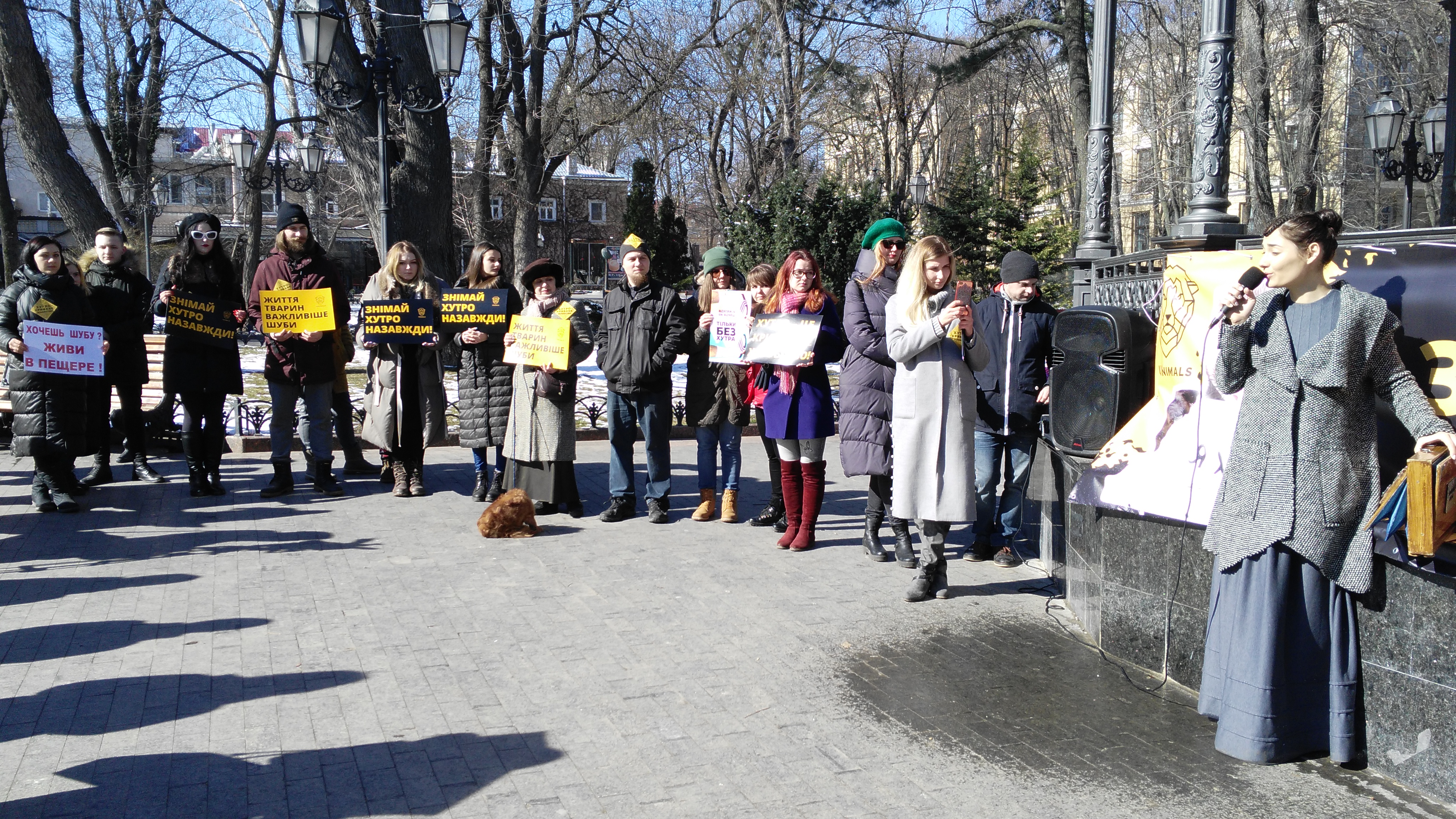 Нынешняя акция «Снимай мех навсегда» одновременно прошла в 10 городах Украины. Все подписи, собранные в поддержку законопроекта, который бы запретил пушные фермы в Украине, будут переданы вместе с обращением зоозащитников в Верховную Раду.