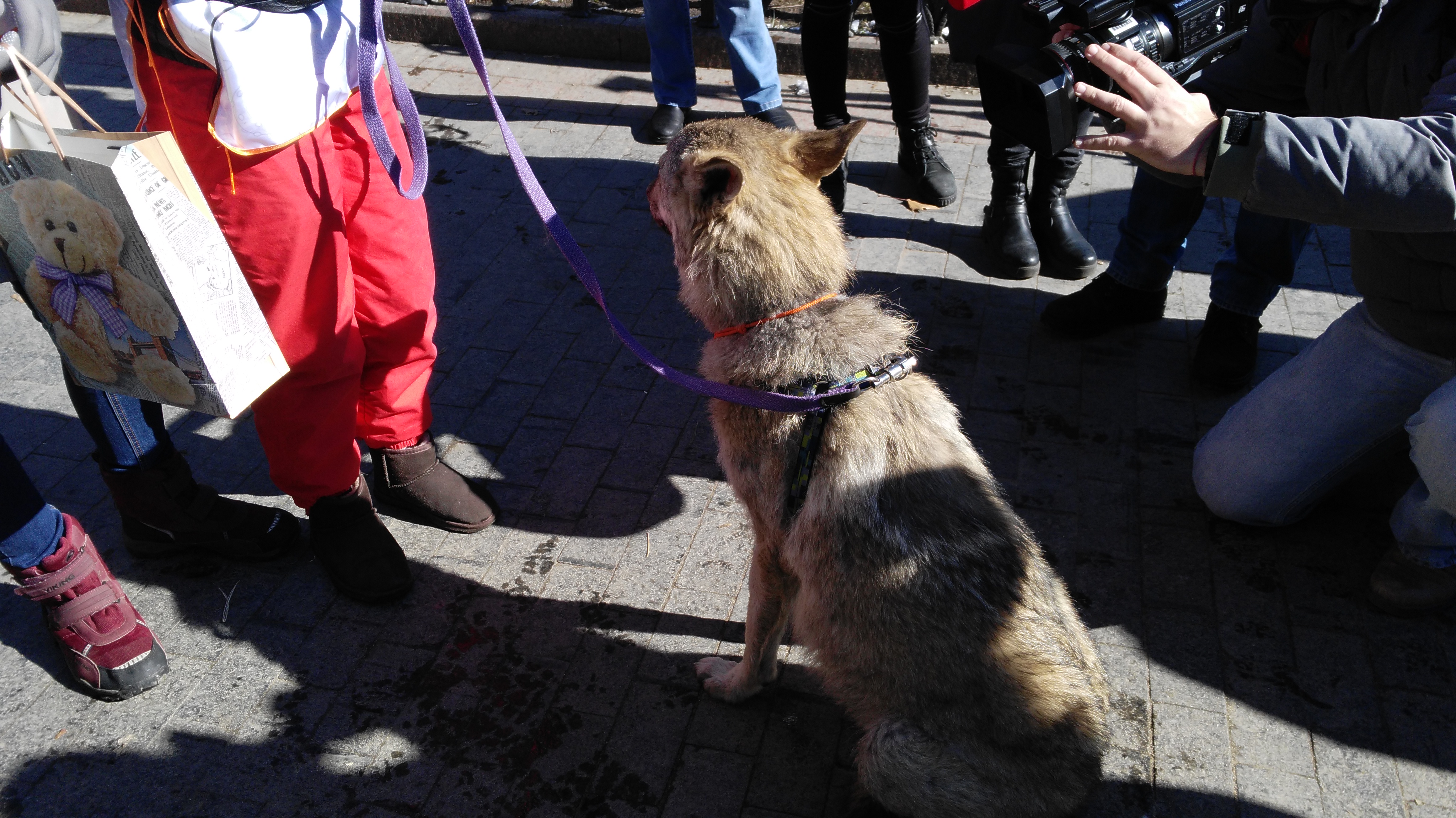 В Одессе на акцию пришли и два четвероногих участника из дикой природы, которых спасли зоозащитники после их «общения» с людьми: лисенок Файер и волк Вой. В дикой природе они уже не выживут, вот и живут теперь у волонтеров.