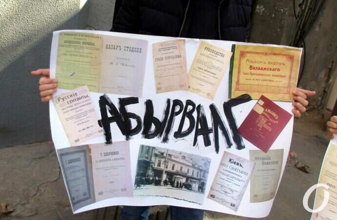 Над некогда памятниками архитектуры, теперь — «павшими» зданиями бывшей типографии Фесенко и Ришельевского театра на одноименной улице — можно любоваться небом. От зданий, по сути, уже ничего не осталось. Одесситы сегодня собрались на историческом месте с цветами и призывами научиться спасать историческое наследие.