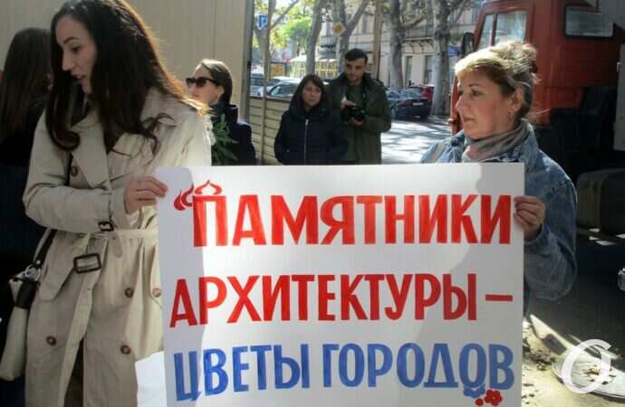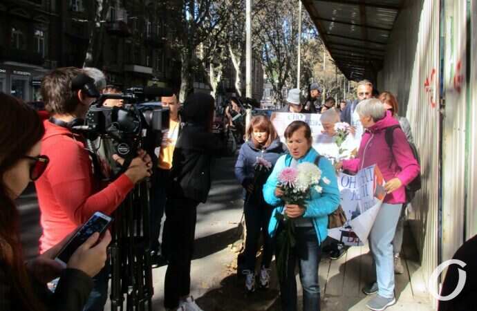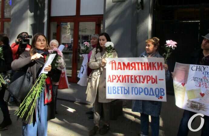 — Эти два здания — наша история, частичка украинской государственности, а мы фактически позволили с молчаливого согласия чиновников разрушить архитектурную стилистику улицы Ришельевской. Это беда! Здесь должна была быть реставрация, а не новое строительство. Вот и пришли сегодня люди, а их немного, с цветами, что напомнить, что памятники архитектуры — это цветы наших городов. Без них город становится безликим, — говорит депутат Ольга Квасницкая.