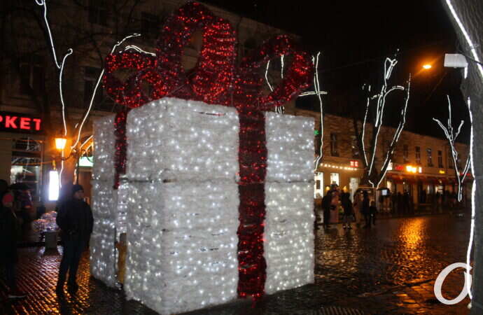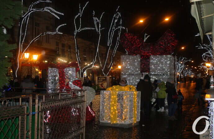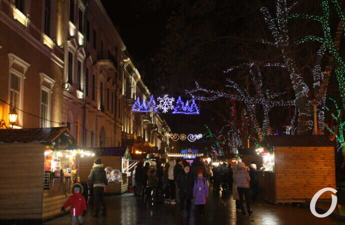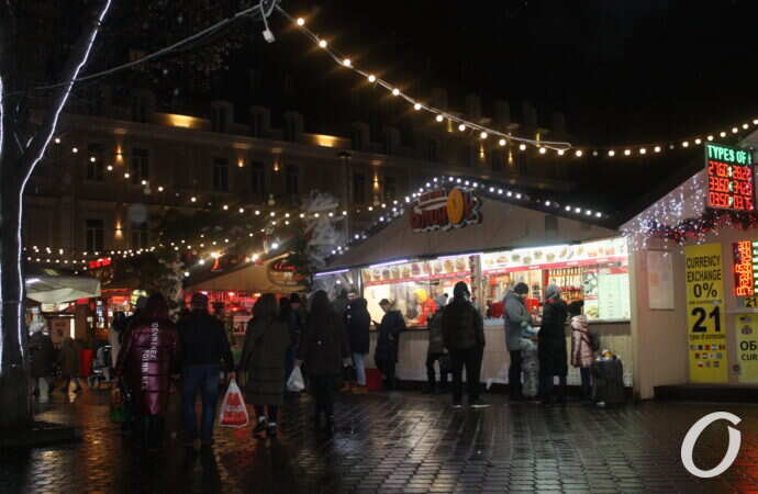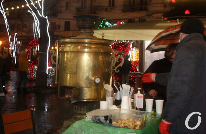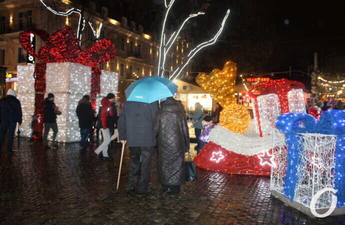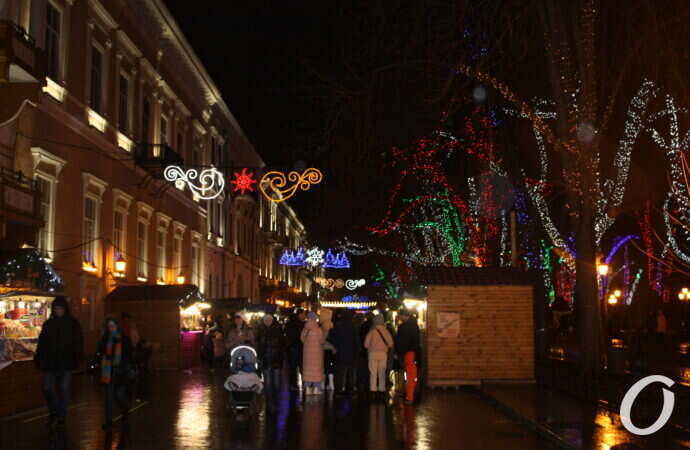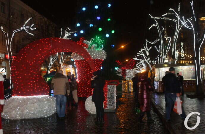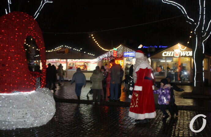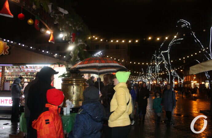 И не станет помехой зимний дождь. В субботу вечером погода не отпугнула одесситов. На Приморском бульваре, у Потемкинской лестницы, на Думской площади и, конечно, на Дерибасовской были тысячи горожан и туристов. На улице их встречают Деды Морозы, Санта Клаусы, Святые Николаи и другие сказочные герои. Пользуются популярностью и праздничные фотозоны. Также многолюдно и на ярмарке, а за горячим и ароматным глинтвейном в дождливый вечер выстаивались очереди.