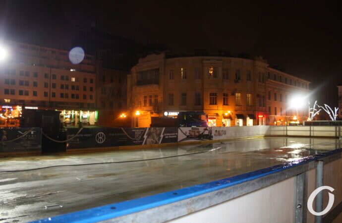 А в это время на Греческой площади вовсю идет подготовка к открытию ледового катка.