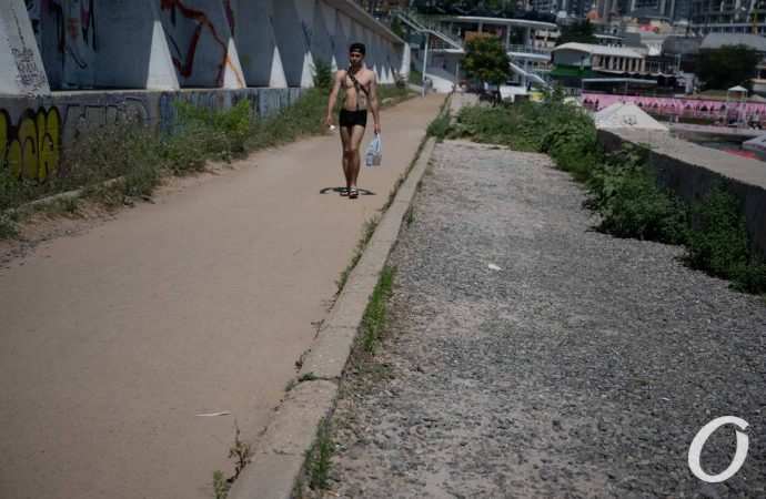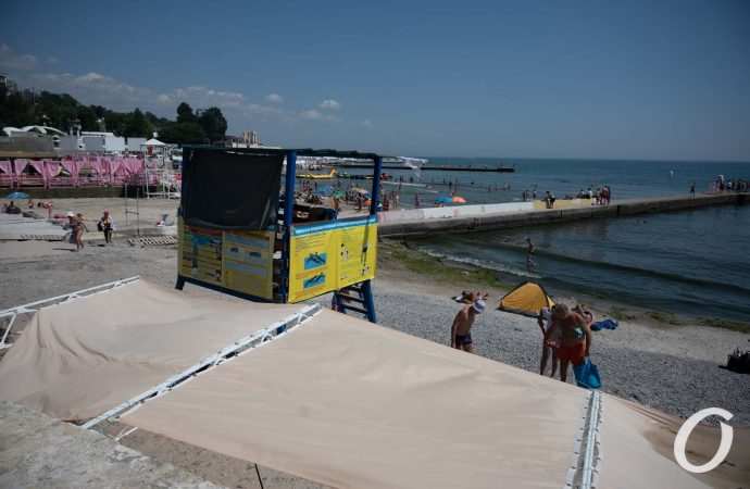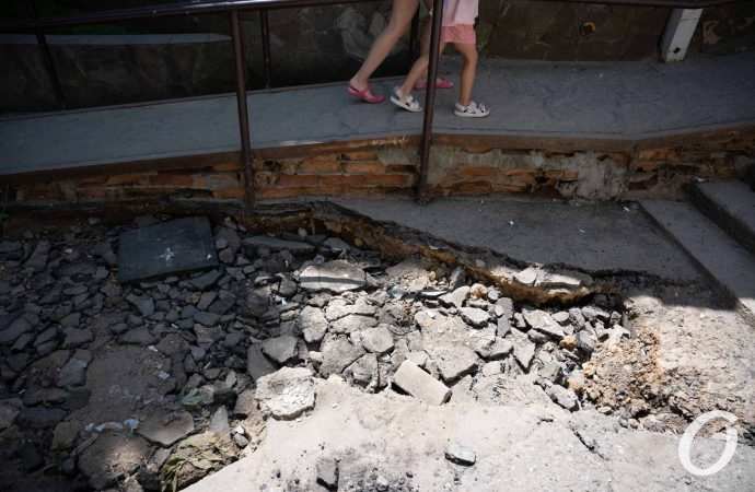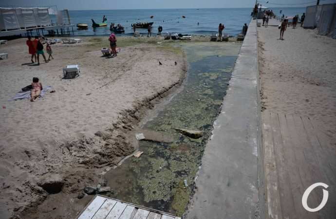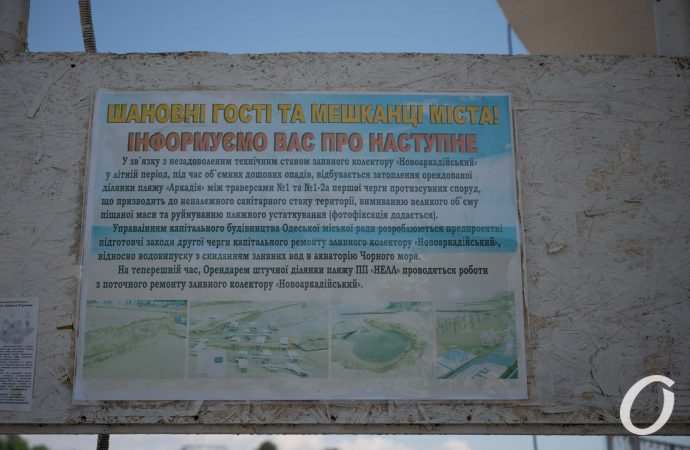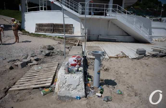 В этом году пляж сильно пострадал от потоков воды, образовавшихся после залпового ливня в июле. Во многих местах был сорван асфальт, размыты спуски и лестницы. В большинстве своем разрушения ликвидировали, но кое-где следы бедствия еще можно заметить.