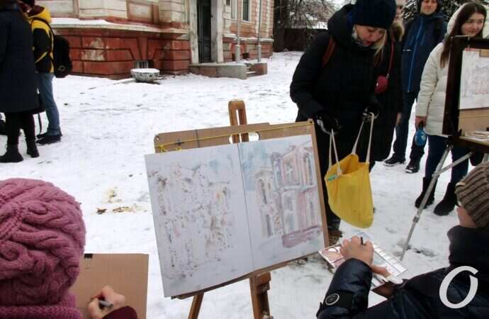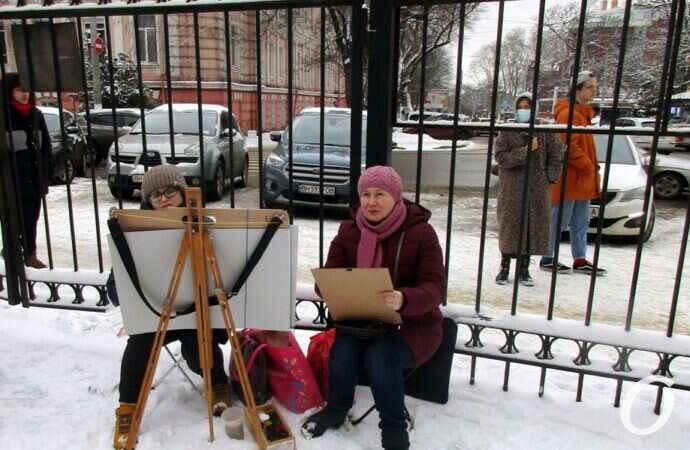 Несмотря на мороз и снег одесские художники собрались на пленэр у Дачи Маразли. Чем занимались? Запечатлевали исторические здания. «Мы все слышим и видим и не будем оставаться в стороне от происходящего», — завили художники, собравшись на «художню варту».