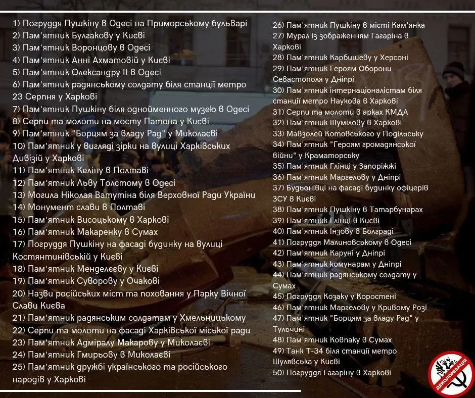 Активисты общественной организации «Деколонизация.Украина» снова обновили ТОП-100 памятников на территории Украины, которые нужно демонтировать в процессах декоммунизации/деколонизации. И, как и ранее, немало объектов находятся в Одессе и в Одесской области.