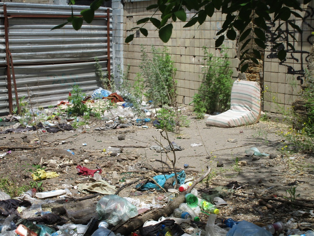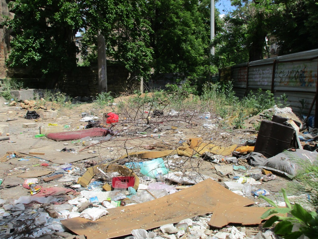 «Это излюбленное место бомжей, там устроили туалет и скидывают мусор, как строительный, так и бытовой. На улице жуткая вонь и антисанитария, и чем теплее на улице, тем ситуация усугубляется. По моему мнению, это происходит из-за того, что ближайший в этом квадрате мусорный бак находится в 500 метрах и ограждение ненадежное, его постоянно срывают», — пишет одессит на портале ЕЦОГ.