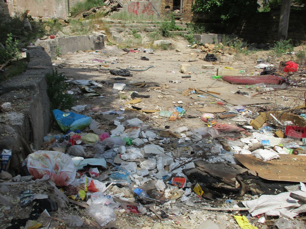Корреспондент «Одесской жизни» в очередной раз побывала в этом у этой достопримечательности. Насчет забора вокруг руин Масонского дома. Ну это только видимость, не более того. Забор есть, но проходы к дому открыты в нескольких местах. Мусора здесь скопилось ну очень много. Везде — следы ночлежек маргиналов. Запахи такие, что хочется надеть противогаз.