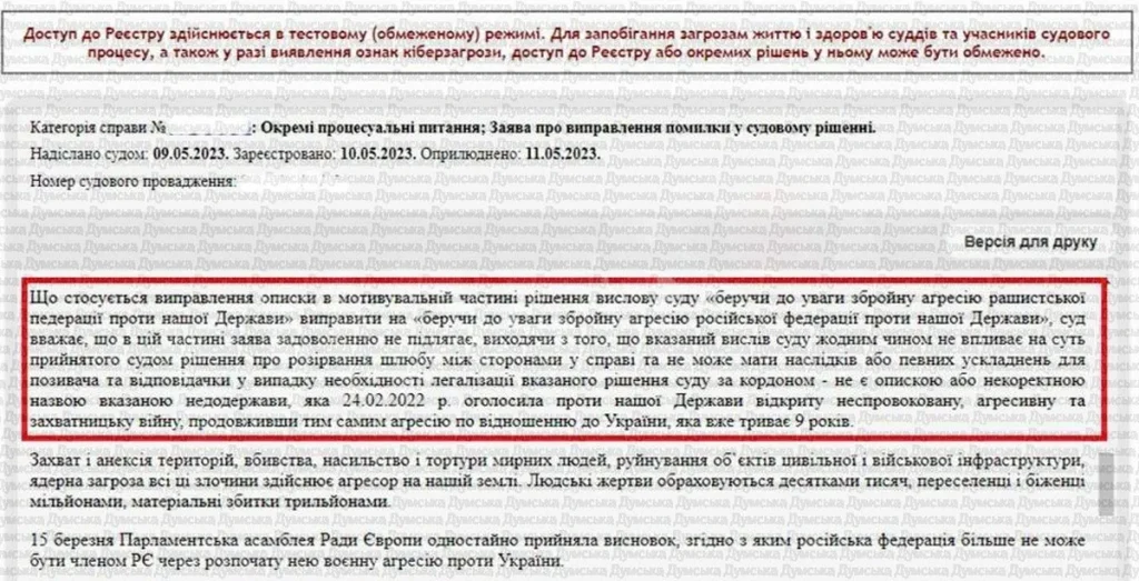 Судья Овидиопольского районного суда Одесчины Дмитрий Гандзий отказался внести изменения в судебное решение, где Россию назвал «рашистской педерацией».