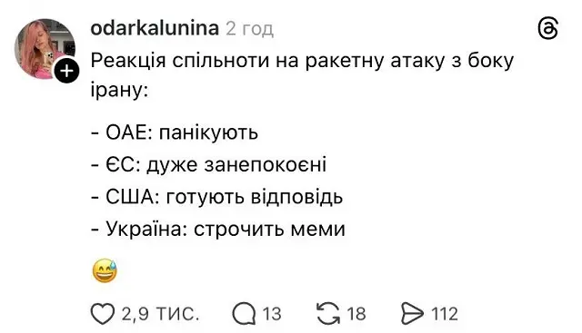 И сегодня в нашей традиционной подборке мемов и прочих забавностей из соцсетей мы узнаем, как украинцы шутят о международной политике, на что жалуется Трамп, кто такой Пес Шайтан, чего боится новый иранский лидер и где теперь отдыхает старый. Готовьтесь смеяться – иногда юмор рассказывает больше, чем новости!