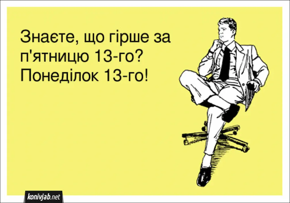 — Фима, я тебя умоляю. Пятница 13-е — это единственный день, когда все неприятности честно предупреждают, шо они придут. А в остальные дни они подкрадываются молча, как твоя мама к холодильнику!