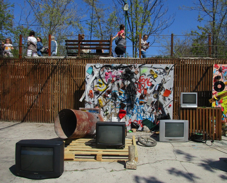 Кстати, кроме уже известных нам контейнеров для сбора одежды, на территории Зеленого театра теперь имеются и коробки для сбора пластиковых крышечек. Появился и шкаф для сбора книг для приютов.