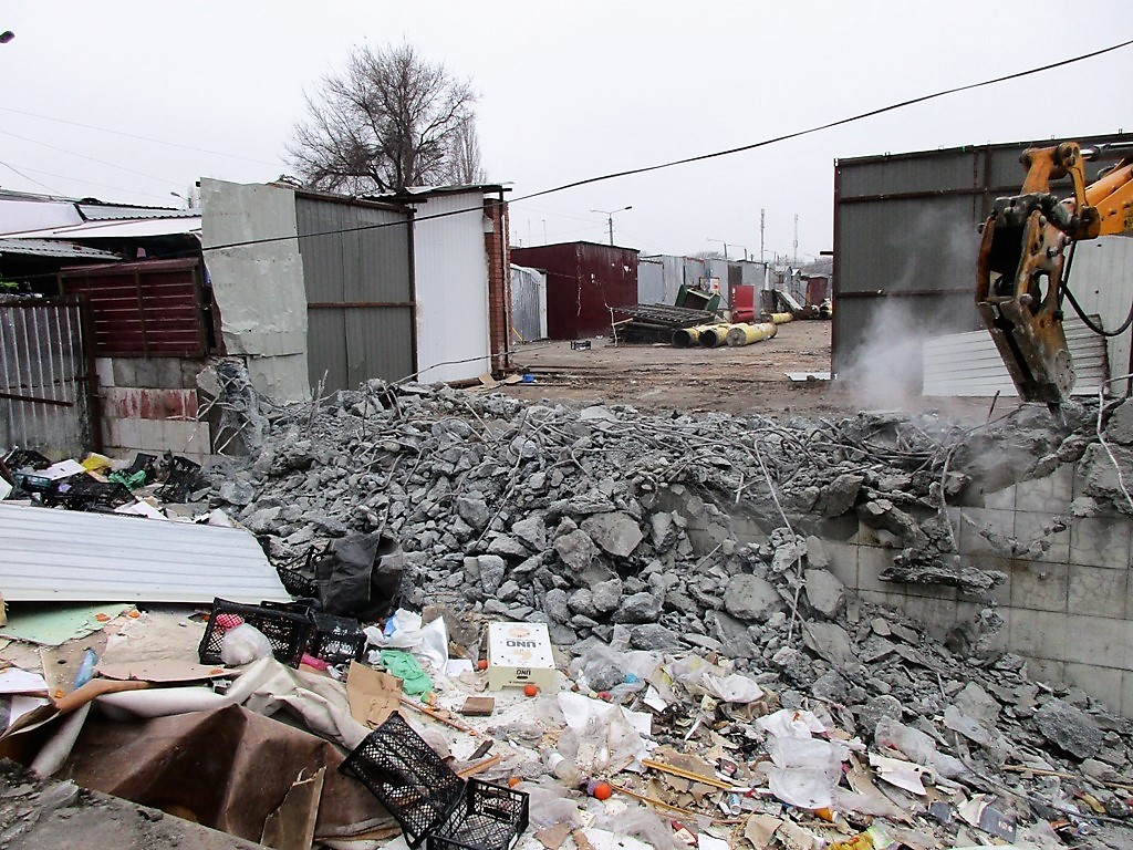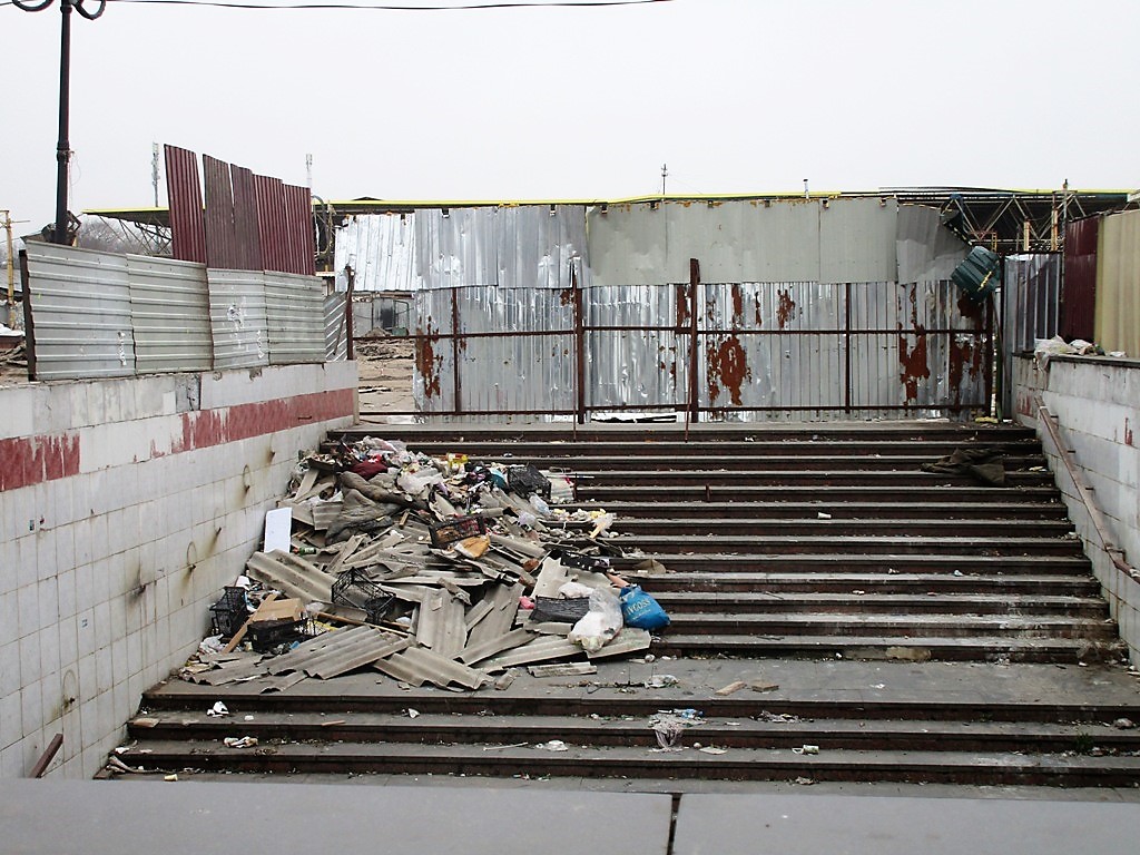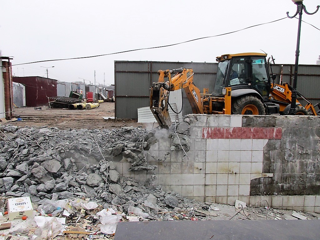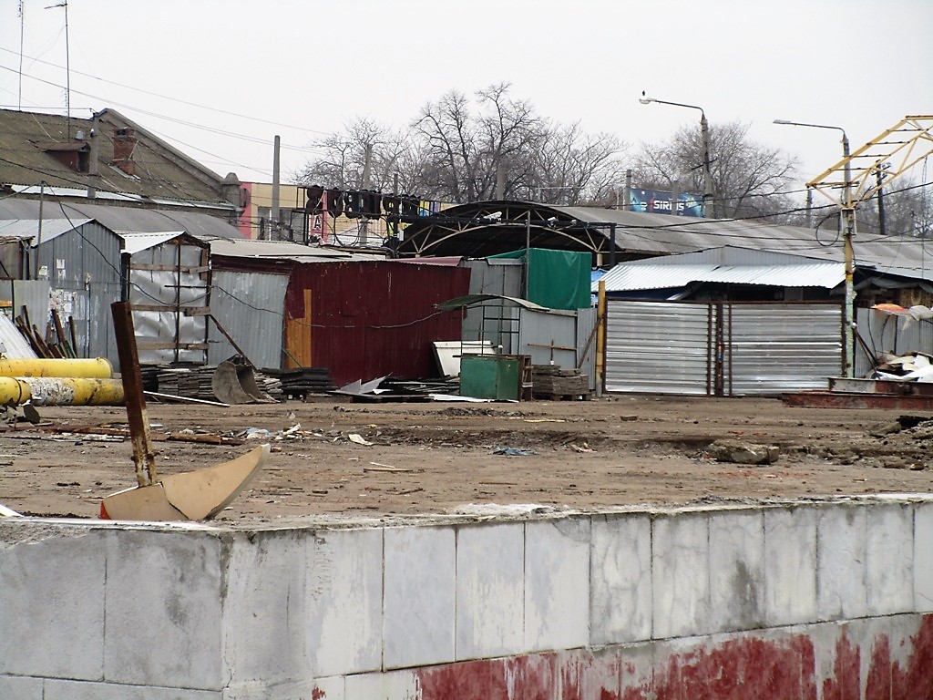 О том, что происходит за забором, можно увидеть, заглянув в места его стыков: там трудится техника, территория уже полностью освобождена от торговых ларьков, причем, торговавших, что называется, всем — от продуктов до одежды. Тянется этот, теперь уже закрытый кусок территории, далеко вглубь самого Привоза.