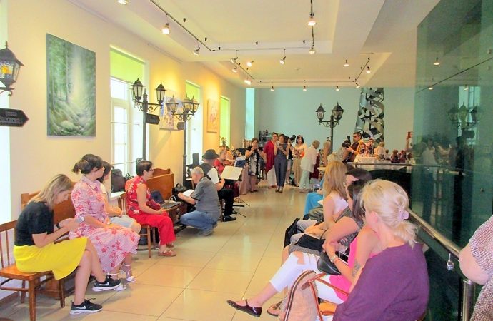 Картины, музыка, куклы… Такой вот он, наш одесский бал, где полотна Александра Фабричникова «Шабад», «Молитва» и другие каким-то невероятным образом соединяются в единое целое с новым творческим сюрпризом — серий кукольных творений «Одесские окна» Александра Бессарабова, работ других мастеров-кукольников — Аллы Котляр, Ольги Будищевой, Елена Поповой и других.