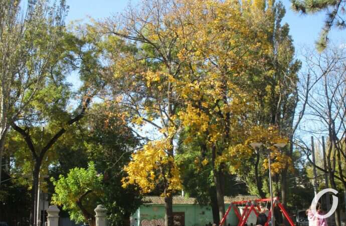 Температура не балует, зато солнце играет на каждом листе, и сидящие на лавочках люди глаз не могут оторвать от листопада.
