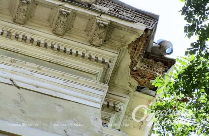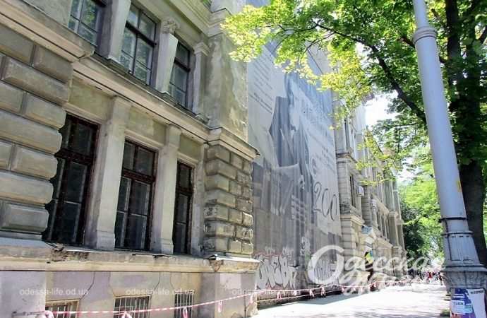 Напомним, ограждающие ленты «украшают» историческое здание библиотеки ОНУ уже не первый год. Как не первый год время от времени летят сверху части карниза.