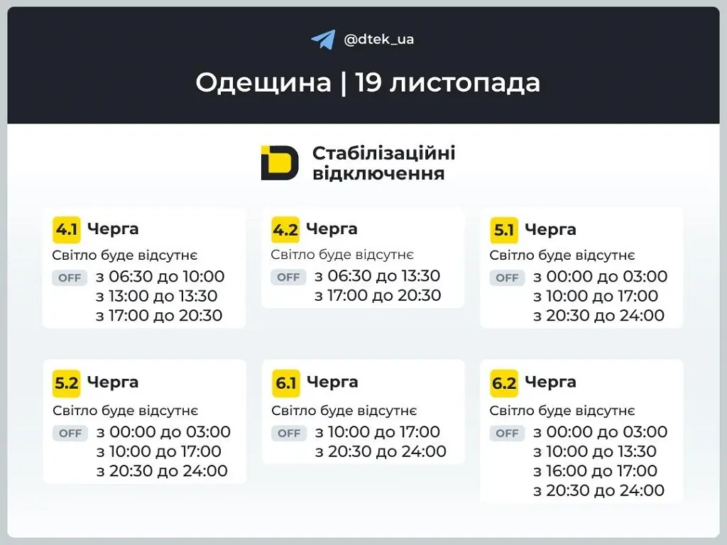 «Советуем проверить обновленные графики», – сообщают в компании ДТЭК «Одесские электросети».