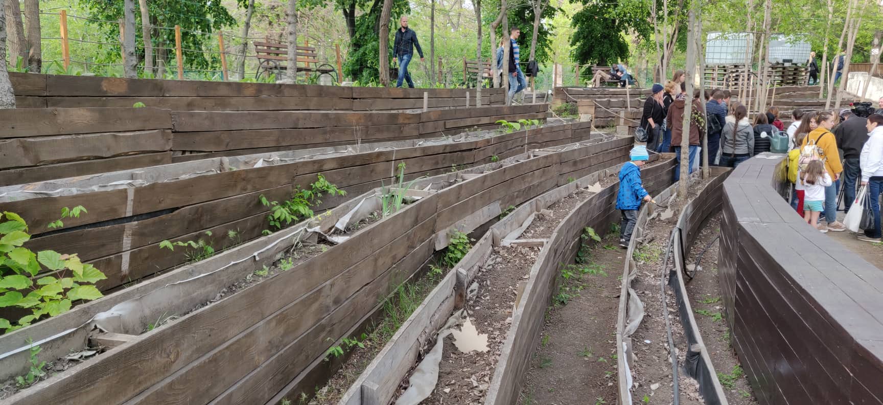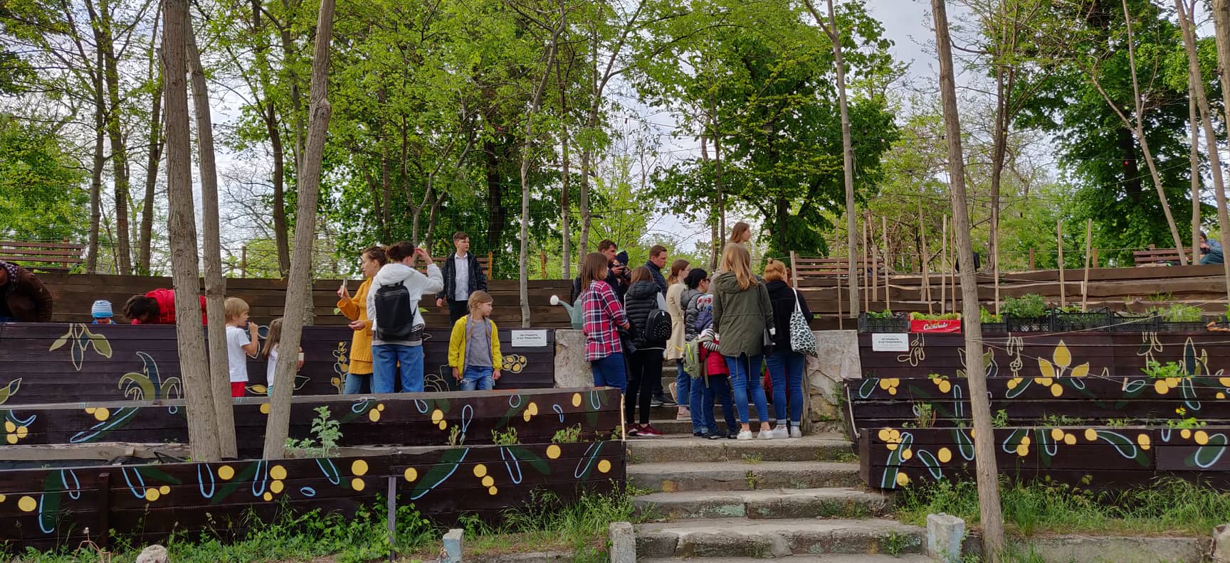 Каждая бывшая скамейка делится на три грядки. Вместе с кадками. в нынешнем году получилось 40 участков. Хотя желающих было больше. Грядки сдаются в аренду — 100 гривней в месяц, собранные деньги направляют на благоустройство территории «Зеленого», создание новых зон отдыха.