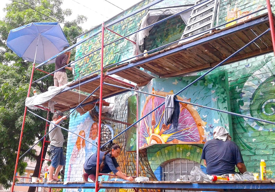 Участники пленэра в мурале воплотили свое видение города, семьи, истории, традиций, флоры и фауны балтских окрестностей.