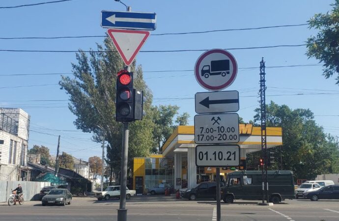 Запрет на движение грузовиков начнет действовать с 1 октября. Специалистами КП «СМЭП» выполнены работы по установке дорожных знаков 3.3, 3.34 и табличек 7.20, 7.4.6 для ограничения движения грузового транспорта в часы-пик по ул. Черноморского Казачества и на выездных улицах.