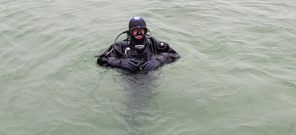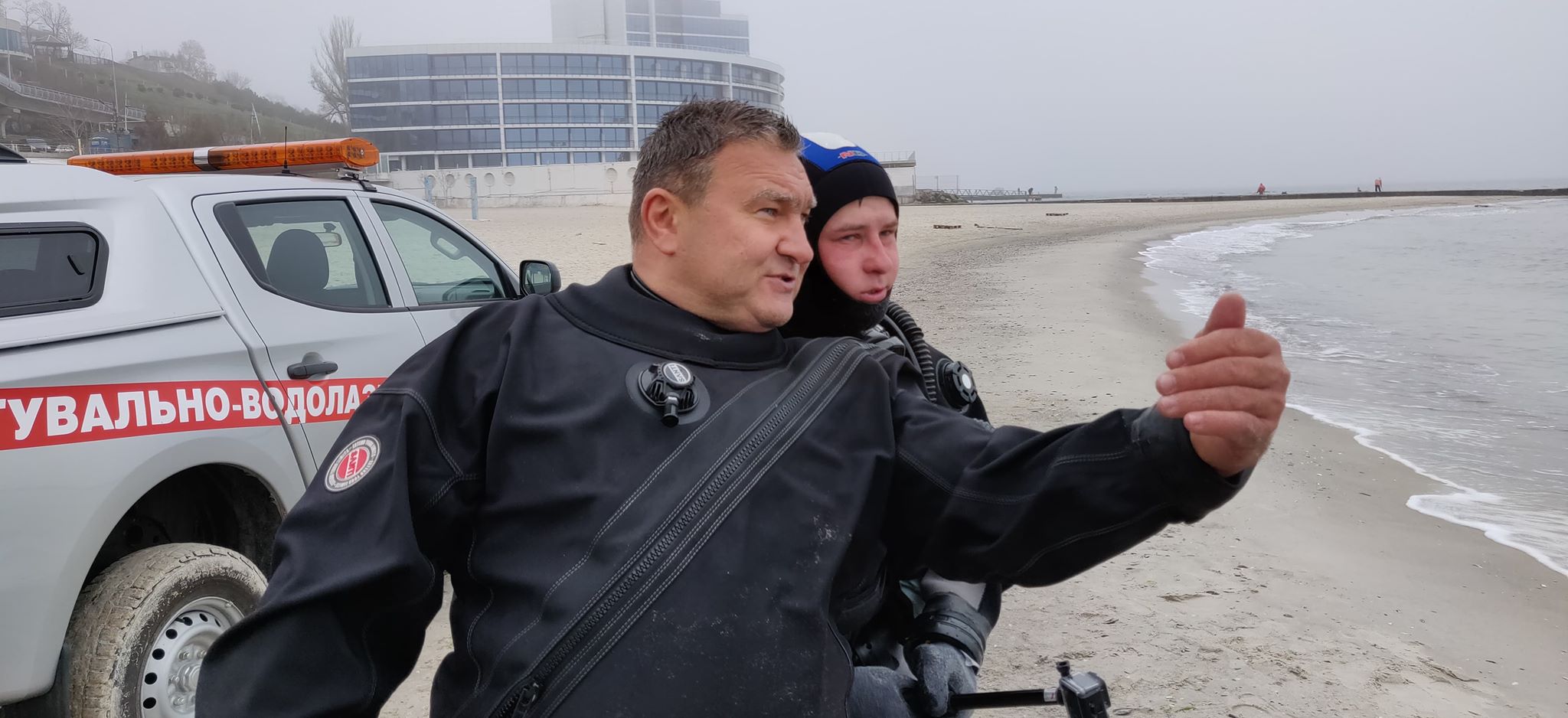 Сегодня очищали дно пляжа «Чайка» на 10 ст. Б. Фонтана. Работать водолазам комфортно — в воде в специальном костюме, достаточно тепло, она сейчас около + 6°C.