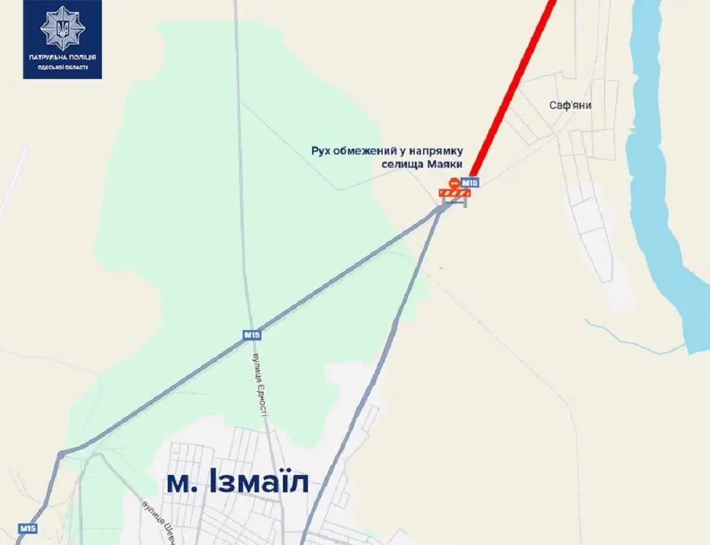 Кроме того, временно ограничено движение транспорта от села Сафьяны (выезд из города Измаил, в направлении села Маяки).