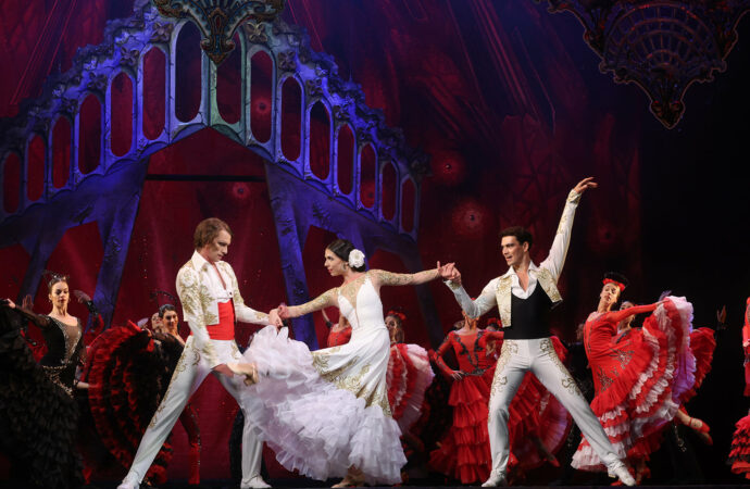 Балет – любовная игра лукаво-кокетливой Кармен, не решившей (или не желающей?) назвать избранника. Соперники же рвут страсти в клочья, в танцевальном противоборстве добиваясь сердца красотки. Как и положено в характерном танце, у каждого свой характер: один – сдержанно гордый, ревнивый (Дмитрий Шарай), другой – жизнерадостный и открытый (Владимир Статный). И оба идальго – отточенностью движений, виртуозностью прыжков, благородством поз – просто неотразимы.