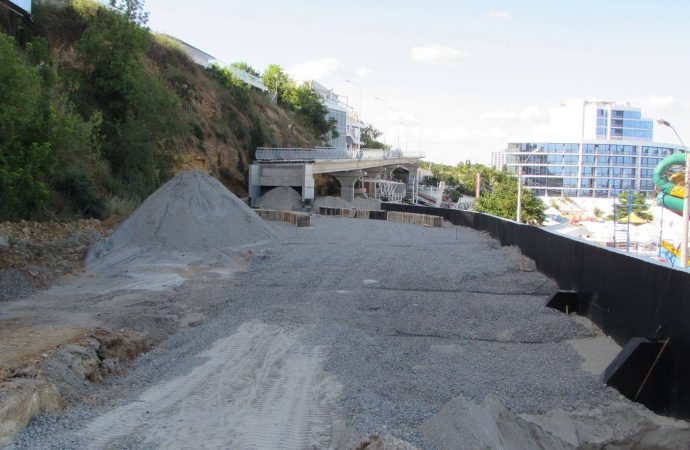 Наш корреспондент побывал на месте строительства вело-пешеходной эстакады на 10-й станции Большого Фонтана. Там на последнем участке начали обустраивать дорогу и даже открыли проход для отдыхающих, воссоединив Фонтан с Аркадией. Видимо, выполняющая работы фирма посчитала, что ходить рядом с эстакадой уже вполне безопасно.