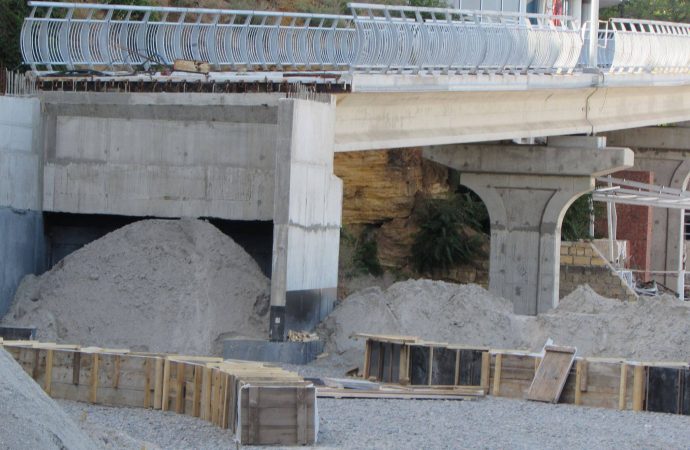 В то же время этот отрезок пути еще недавно считали самым проблемным. Так, три месяца назад там буквально «повисли в воздухе» опоры. В итоге пришлось укреплять склоны. Также, по информации некоторых СМИ, эстакаду, учитывая особенности расположения зданий, пришлось немного «развернуть» в сторону моря.