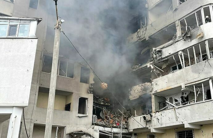 Последствия попадания российской ракеты в одесское общежитие